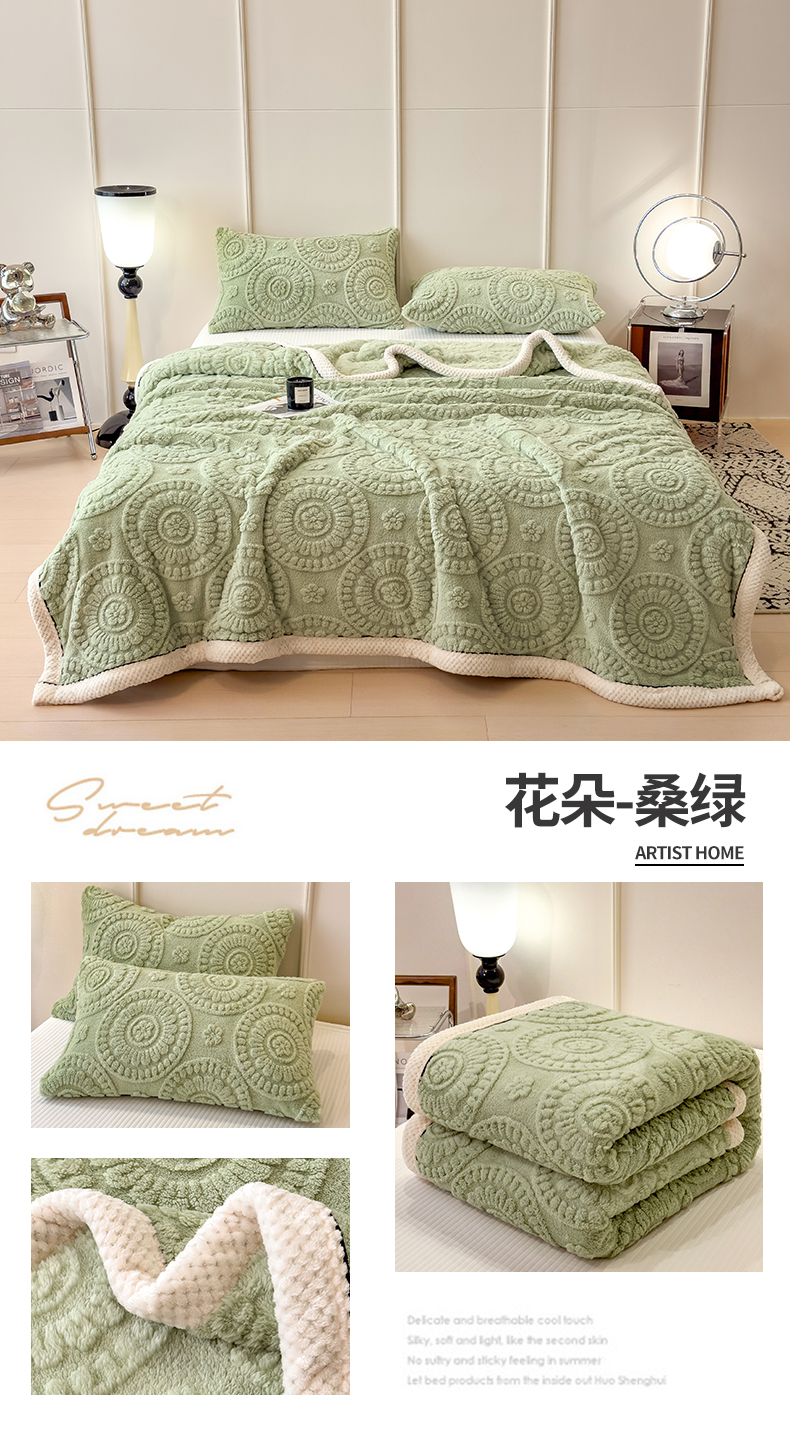 (总)莱家富 2026新款加厚双层复合毯舒棉绒剪花毛毯,兰色,绿色,米色,深灰色,樱花粉,紫色