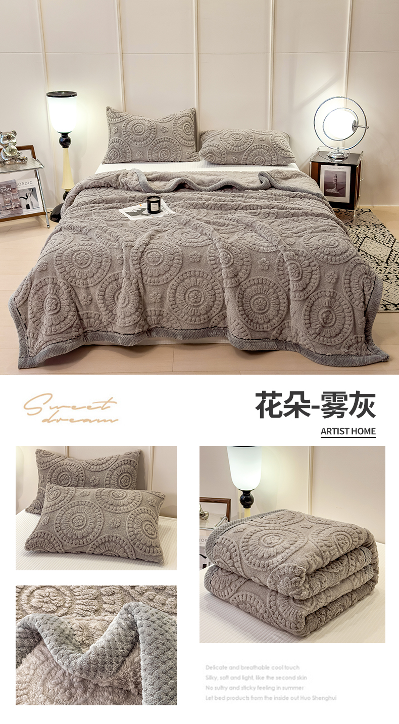 (总)莱家富 2026新款A类双层舒棉雕花绒羊羔绒暖绒毛毯毯子-梦境(可供跨境外贸抽空压缩爆款首选),梦境-粉玉,梦境-幻白,梦境-米驼,梦境-桑绿,梦境-雾灰