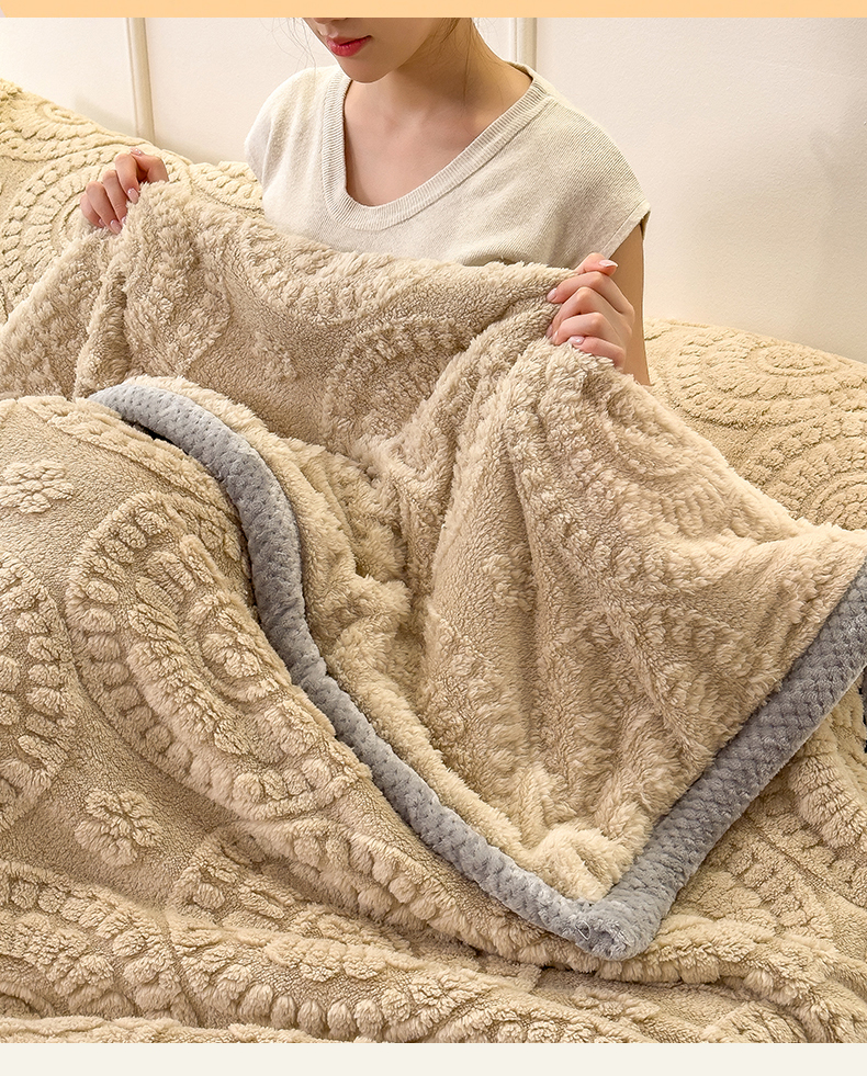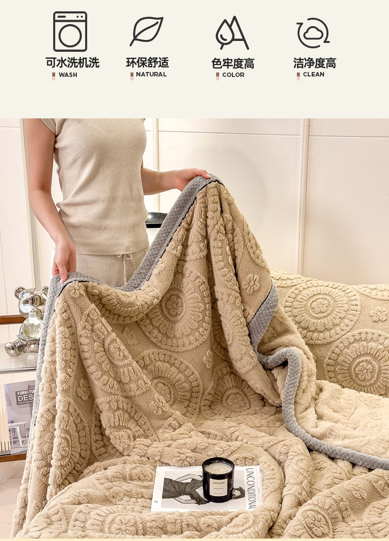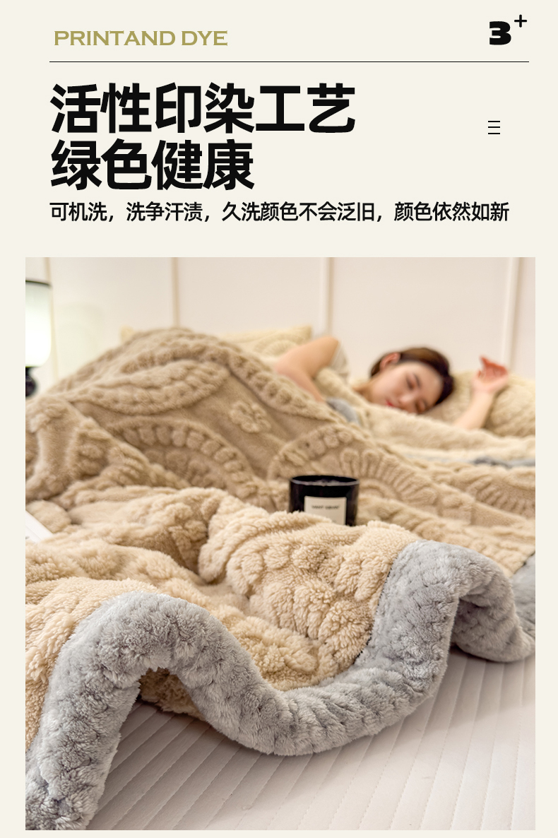 (总)莱家富 2026新款双层加厚阳离子提花毛毯羊羔绒毛毯盖毯办公室午休毯,浔彩-豆沙,浔彩-果绿,浔彩-灰色,浔彩-奶白,浔彩-天蓝,浔彩-驼色