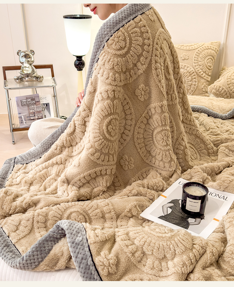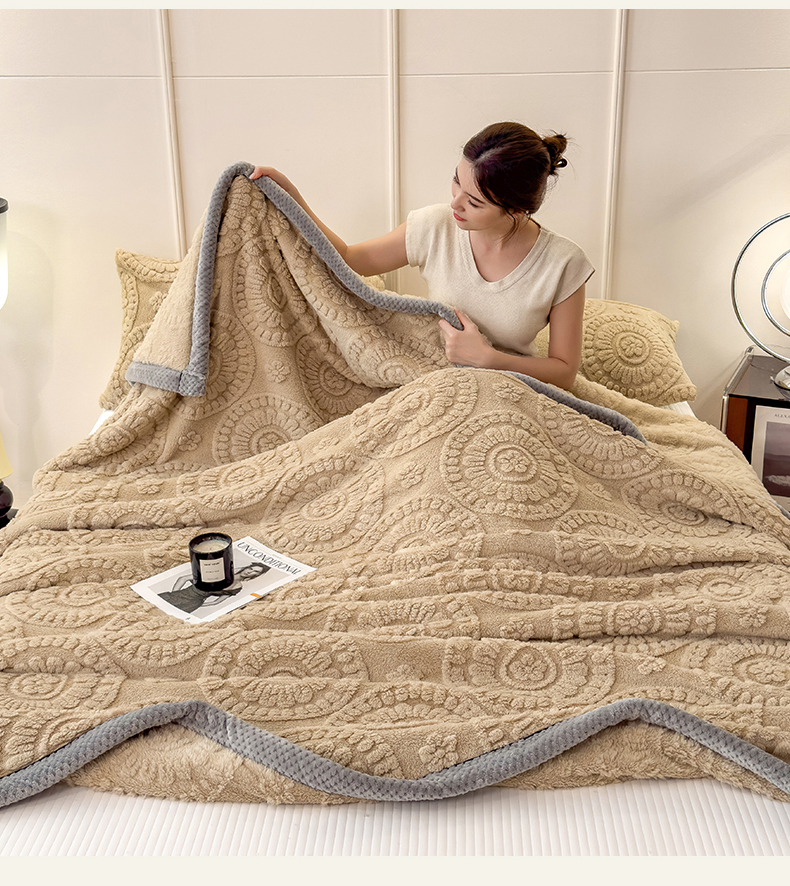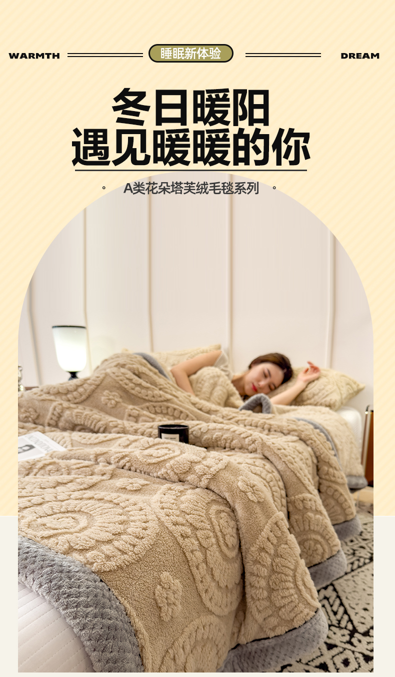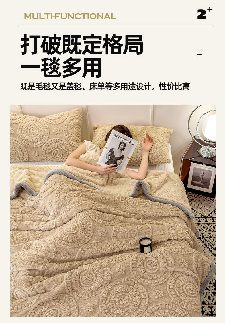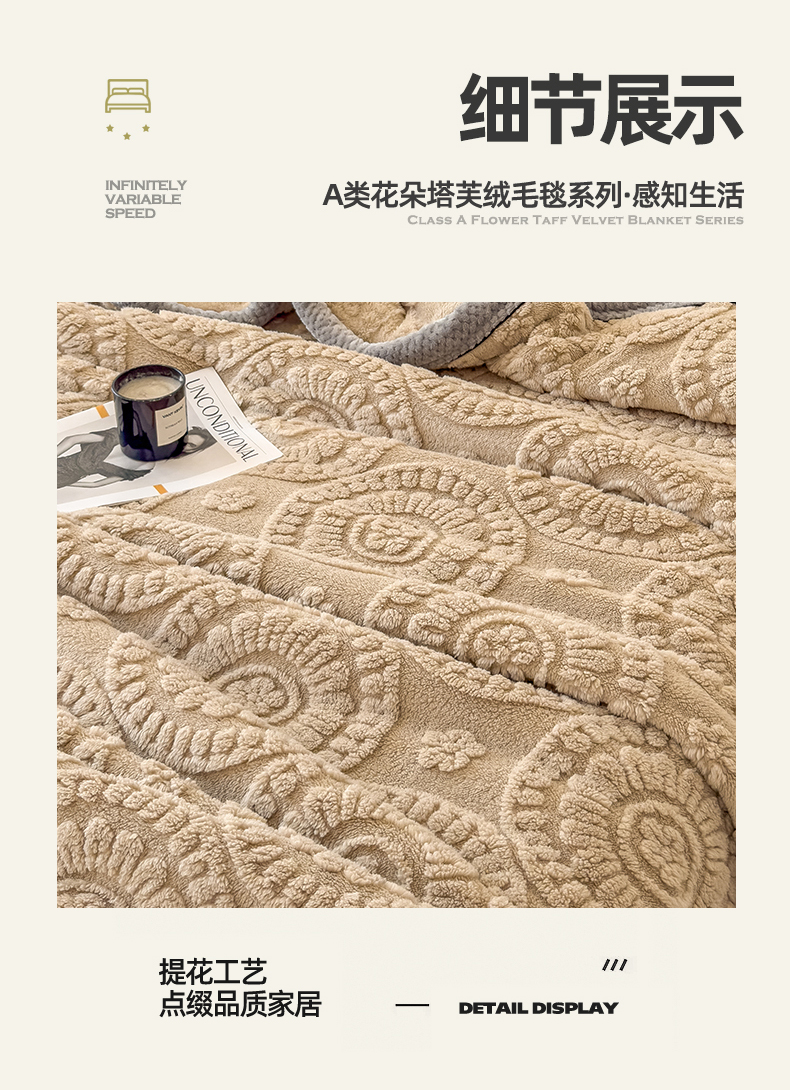 莱家富 2026新款新款A类塔芙绒雕花双面毛毯毯子-花朵(可提供跨境压缩) 花朵-米驼