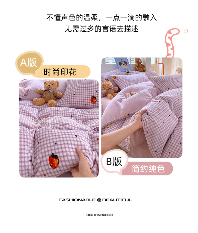 当前位置: 91家纺网 > 商品网购 > 床品套件 > 四件套 > 牛奶绒四件套 > 悦织湾家纺 2025新款高克重牛奶绒印花四件套床单床笠轻奢时尚床上用品三四件套被套 彩色草莓