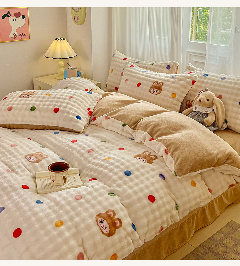 商品名称:梦纤绒 2025新款保暖舒适亲肤泡泡绒四件套绿南瓜