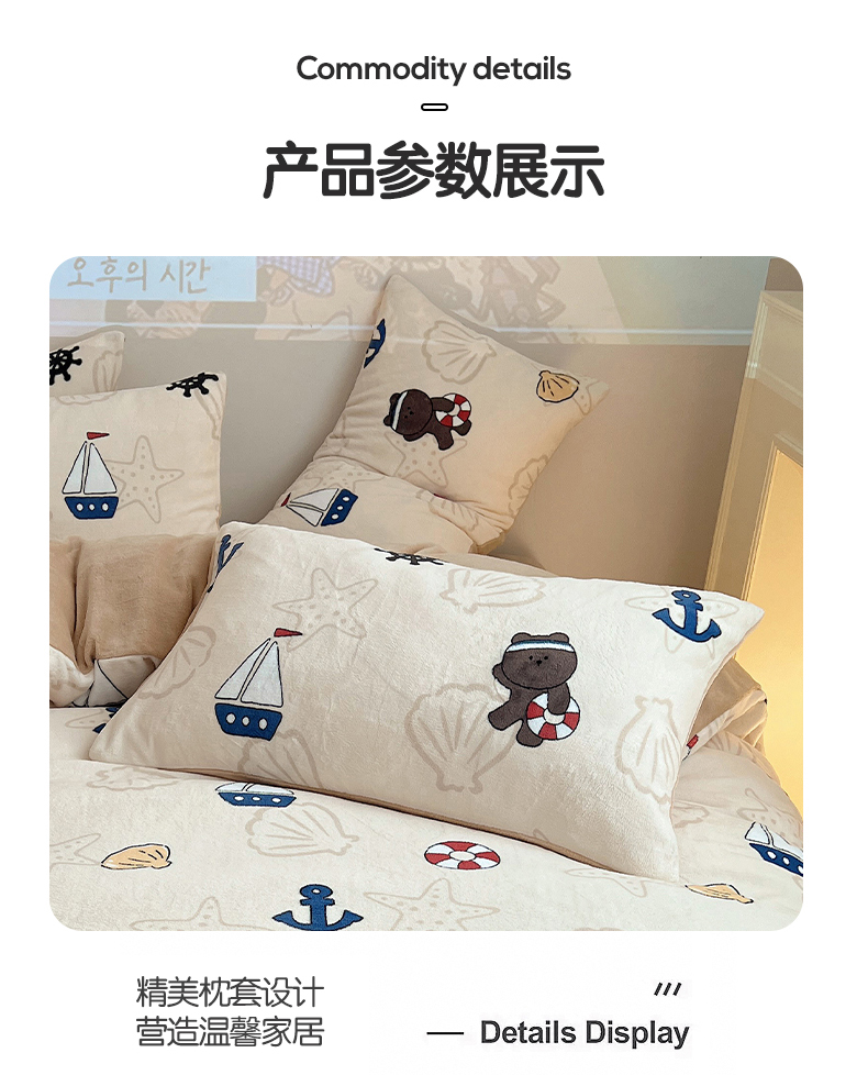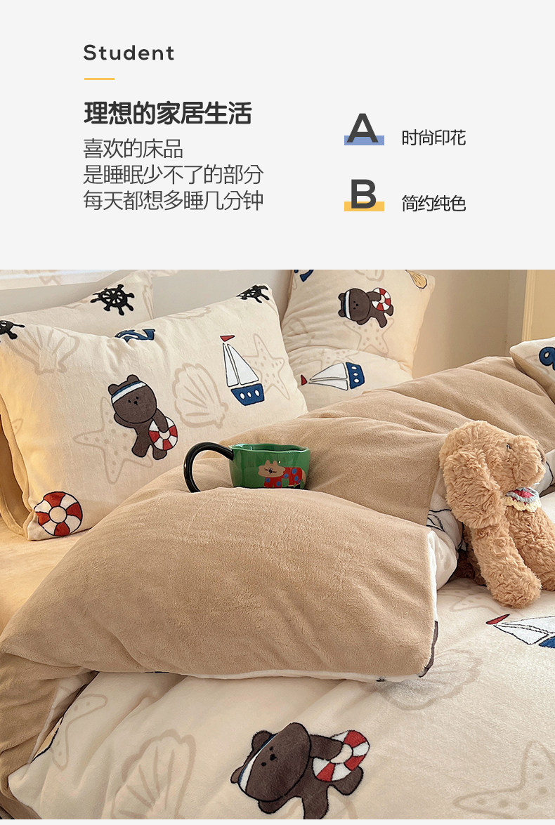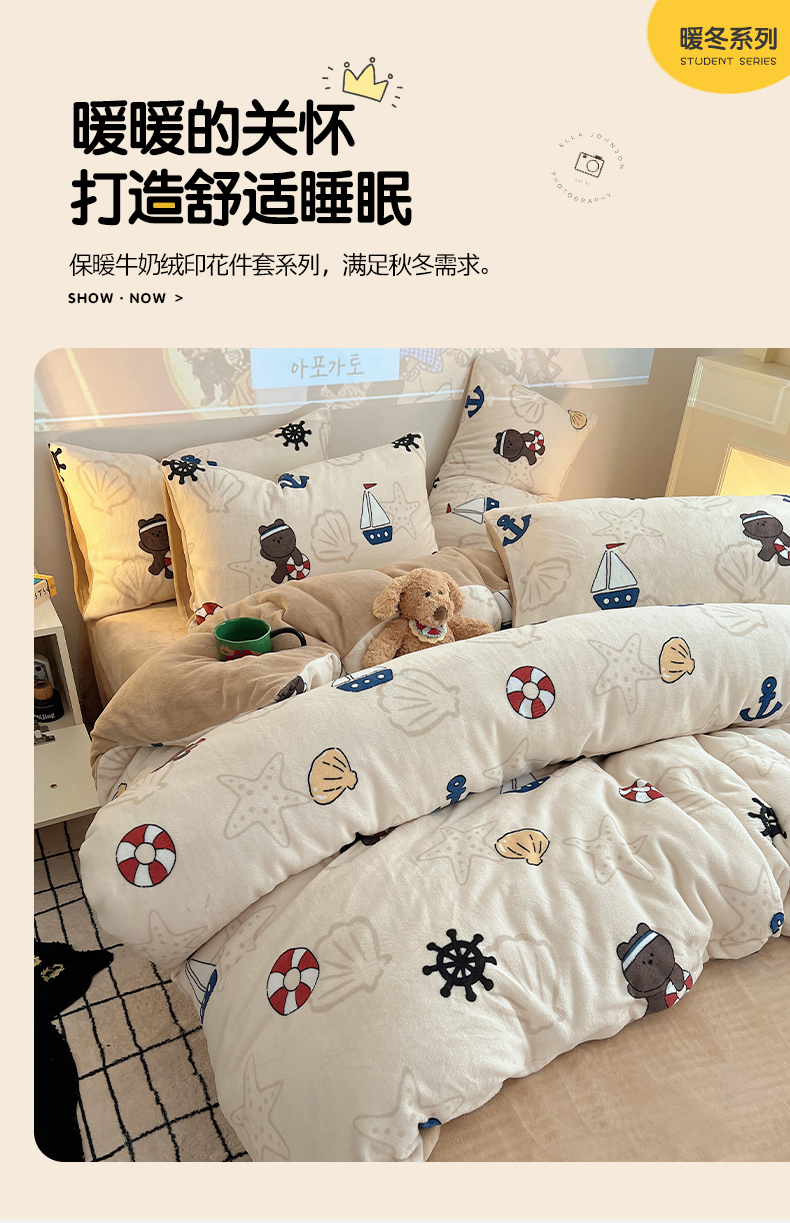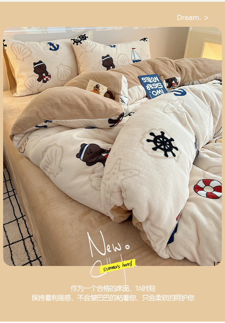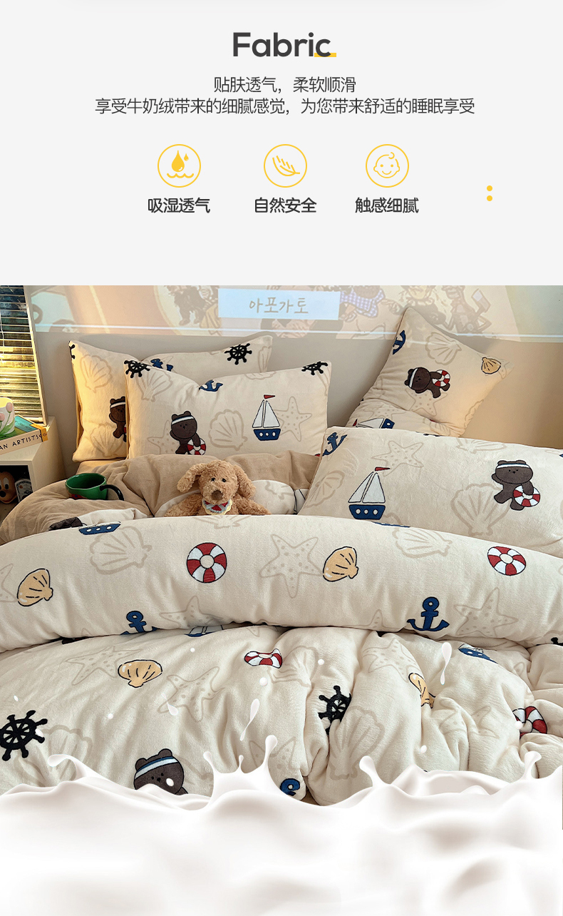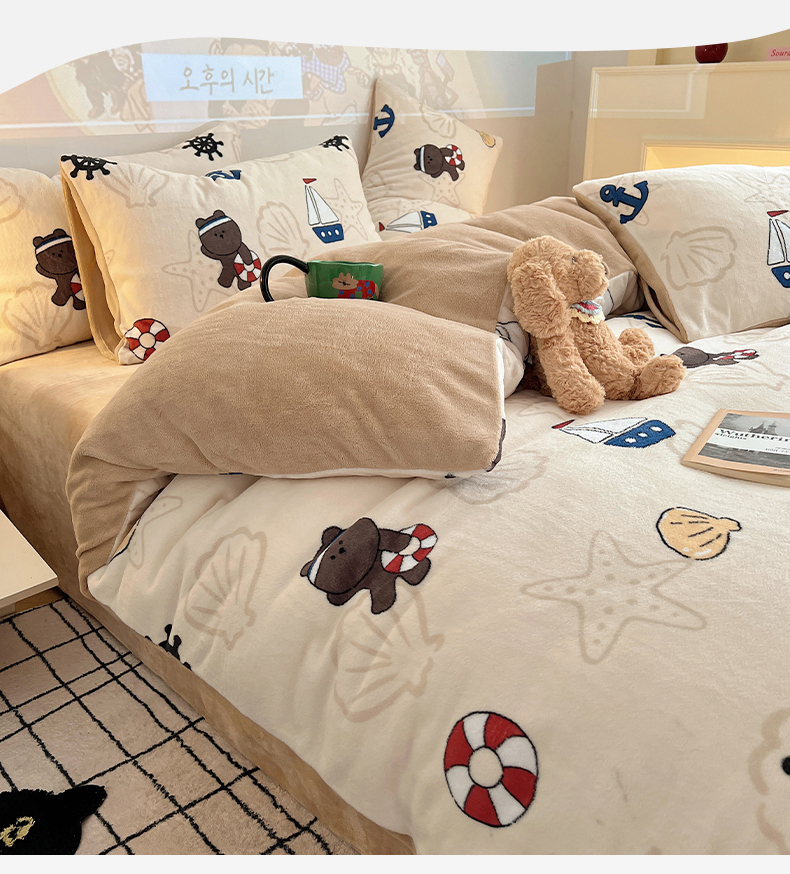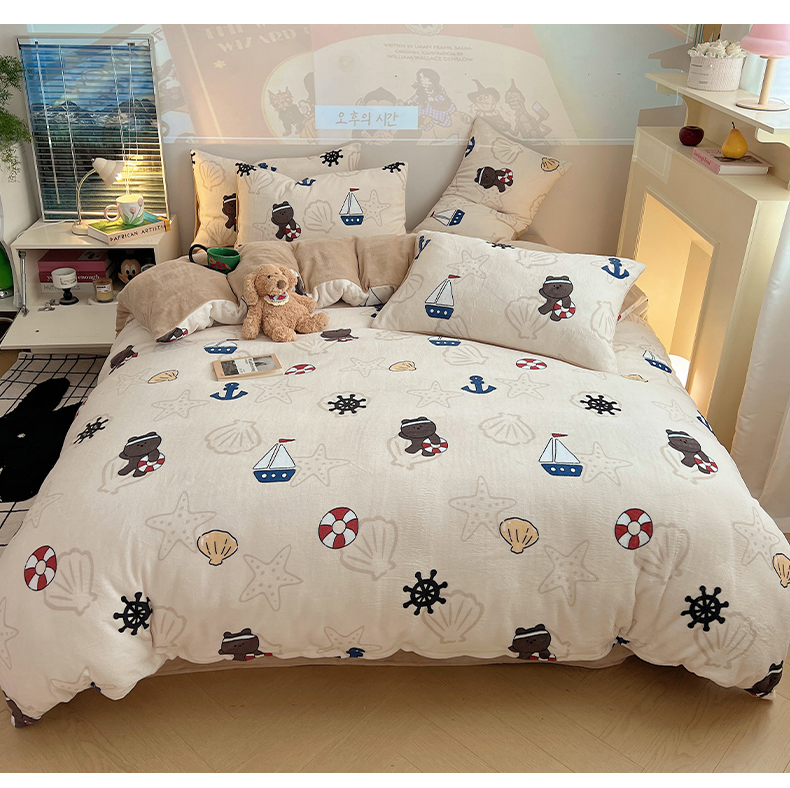 商品名称:瑞莱 2025新款A类200克高克重秋冬印花牛奶绒四件套-卡通系列 远航