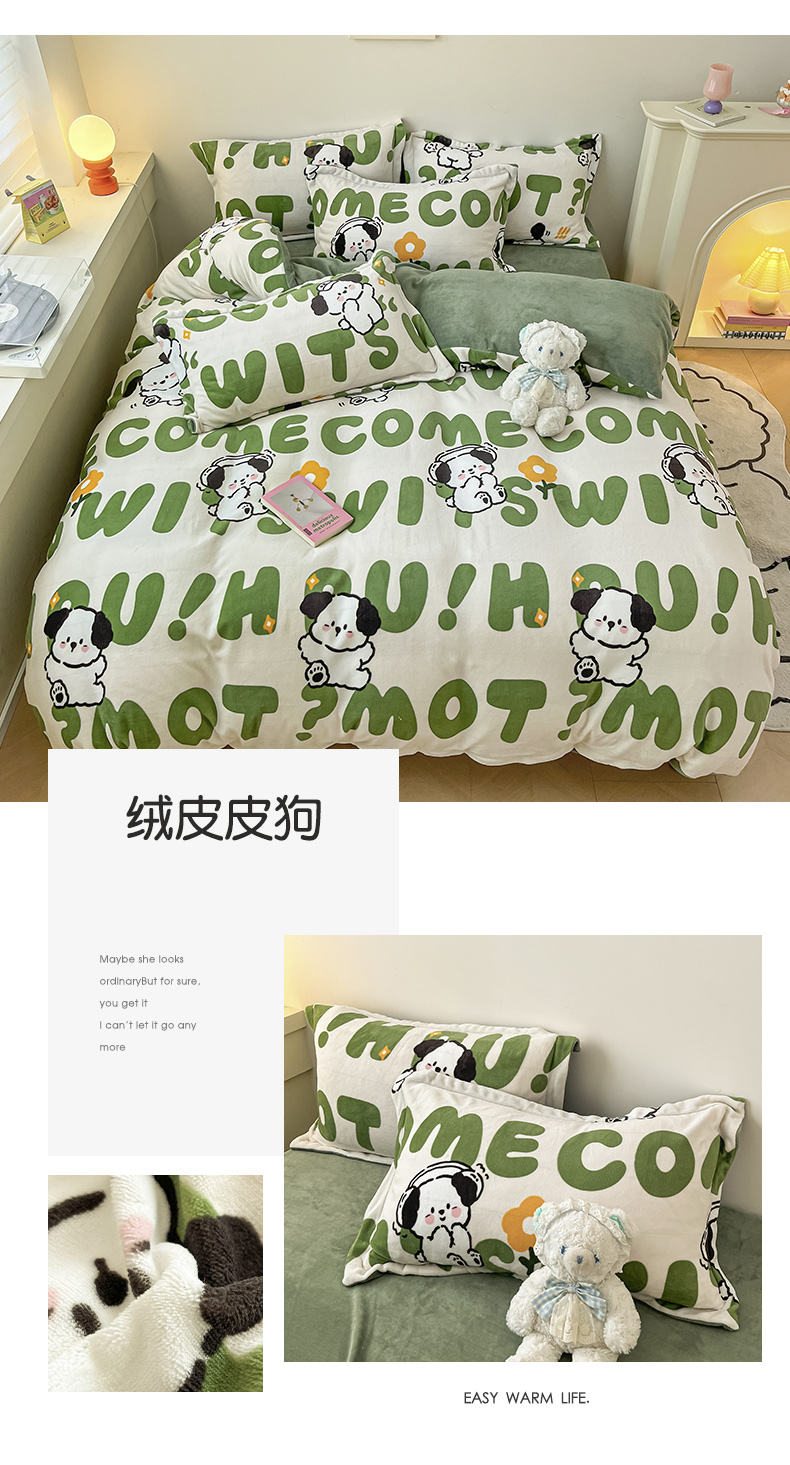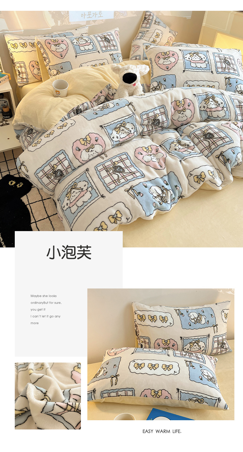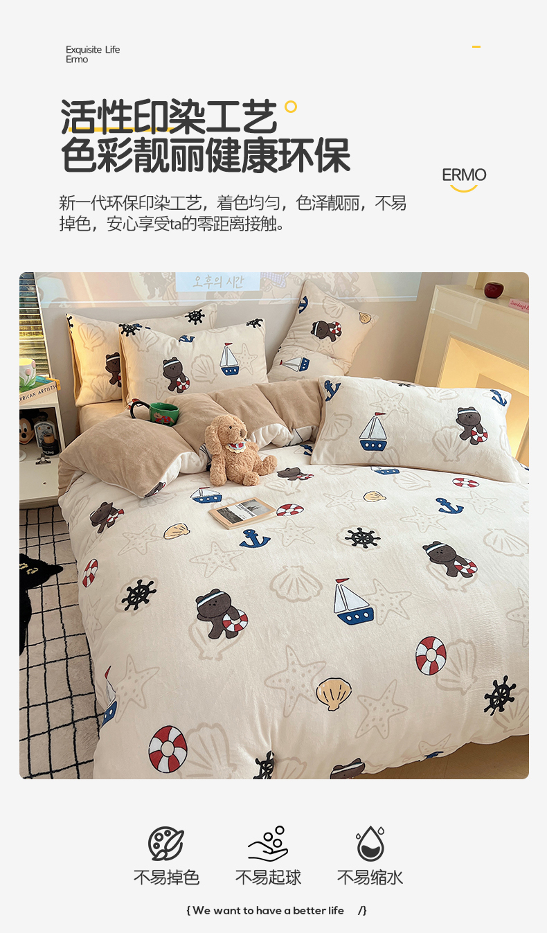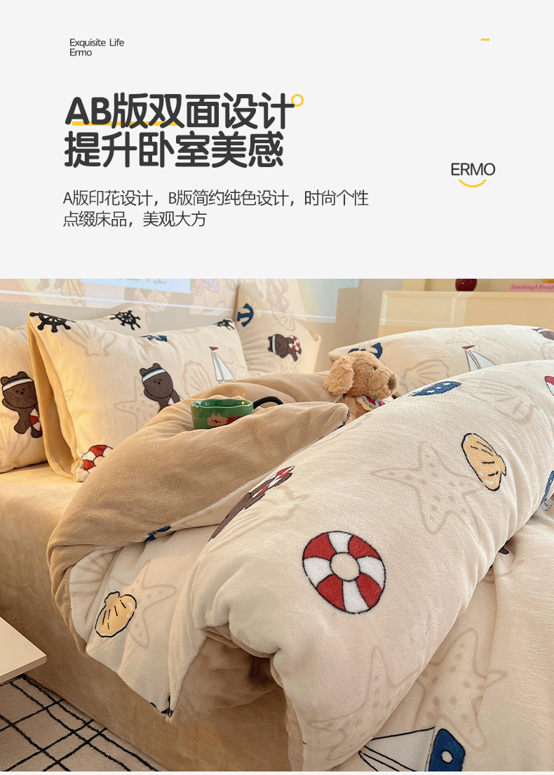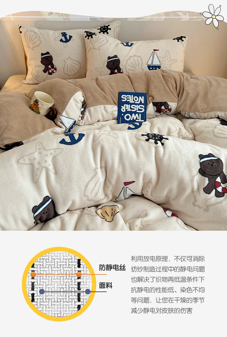 商品名称:瑞莱 2025新款A类200克高克重秋冬印花牛奶绒四件套-卡通系列 远航