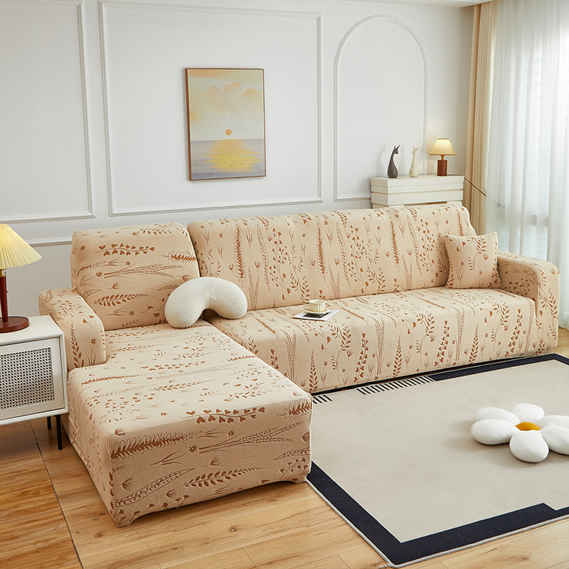 丝绮鹿 2025新款雕花绒-麦浪沙发套松紧款(贵妃图)麦浪系列 麦浪-云灰