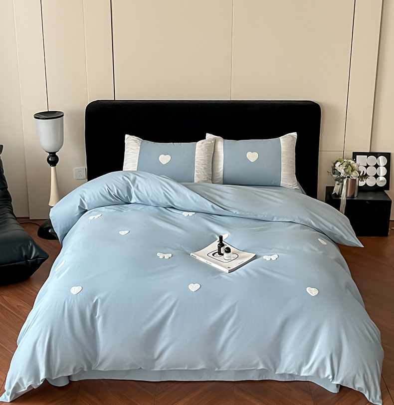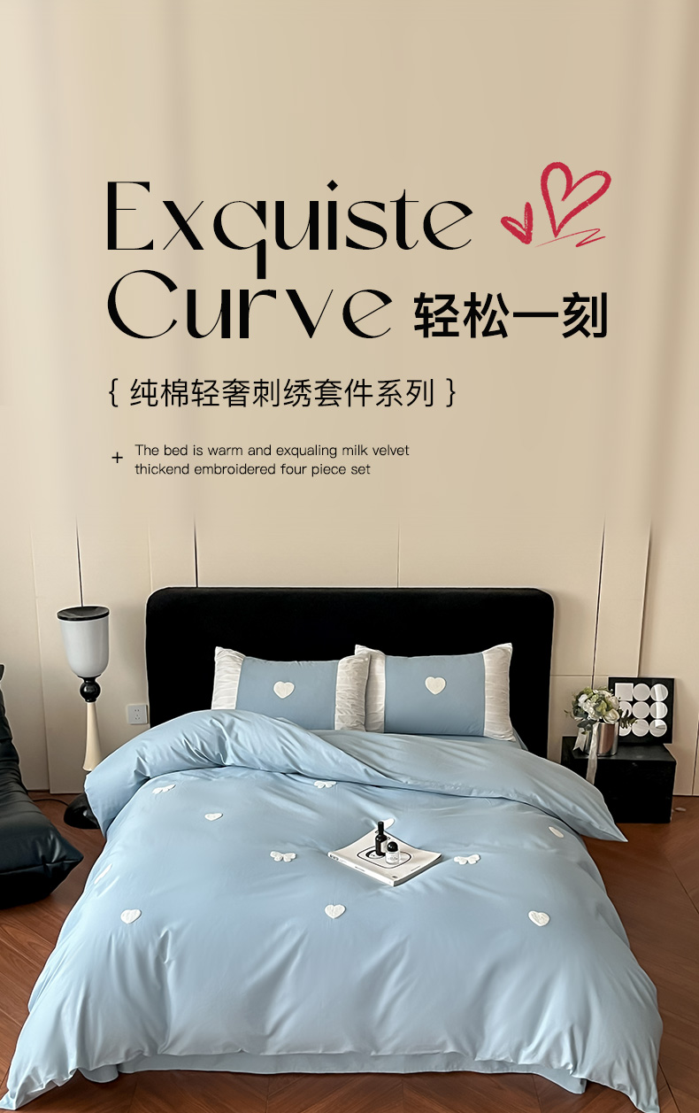理想家家纺 2025新款纯棉轻奢刺绣四件套--心愿系列场景二 心愿蓝