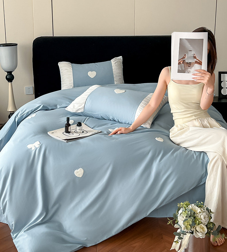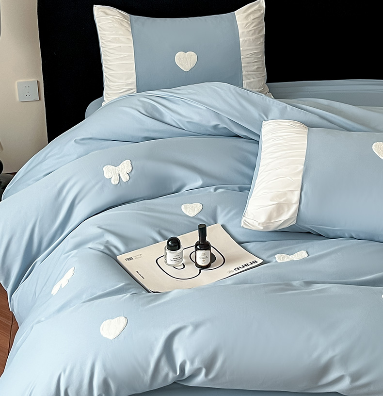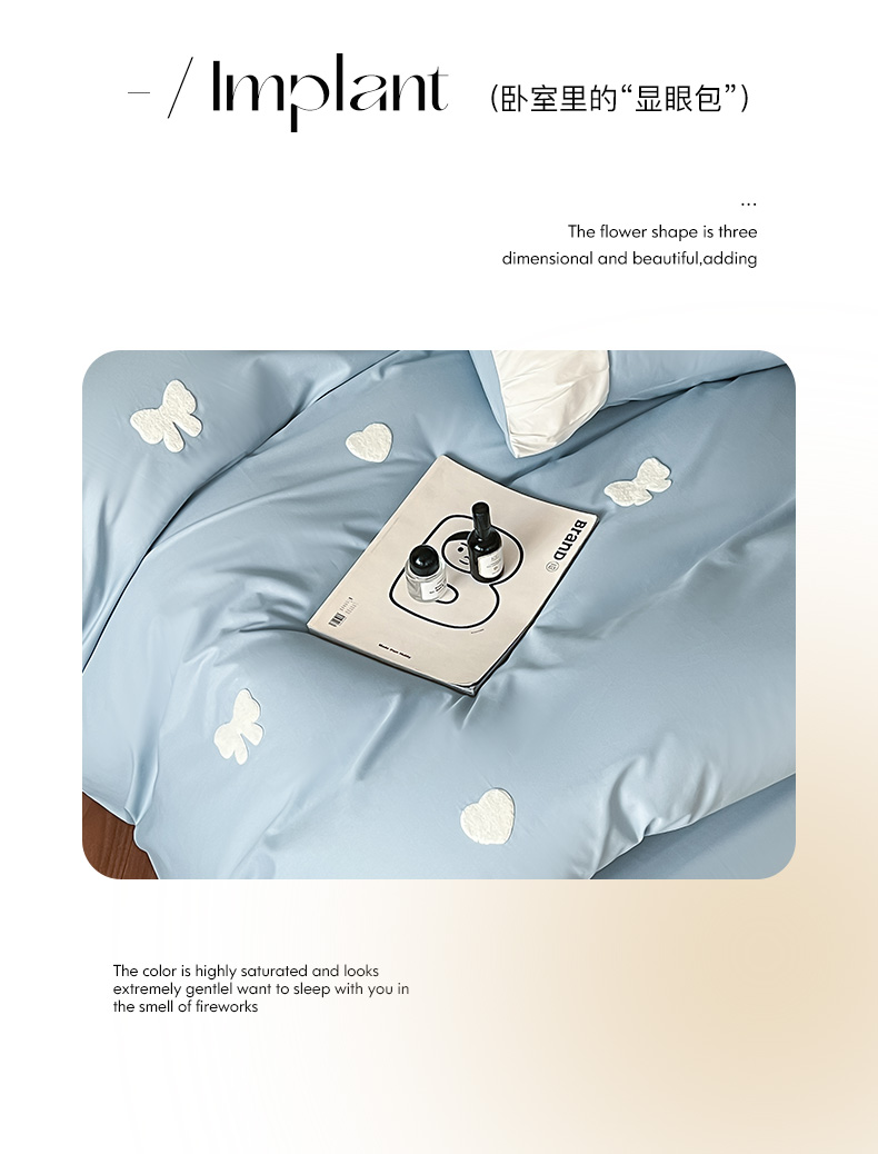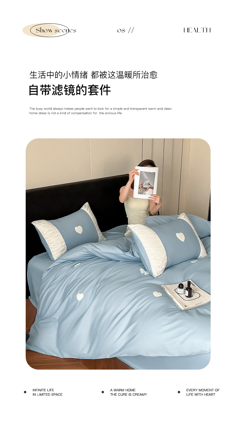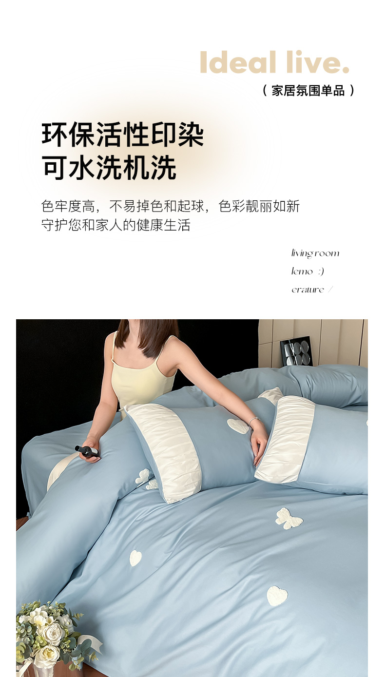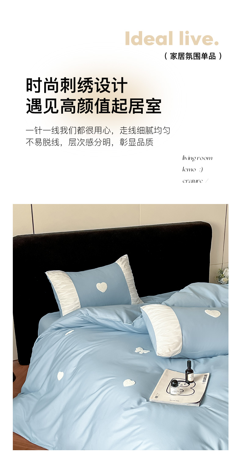 商品名称:理想家家纺 2025新款纯棉轻奢刺绣四件套--心愿系列场景二 心愿蓝