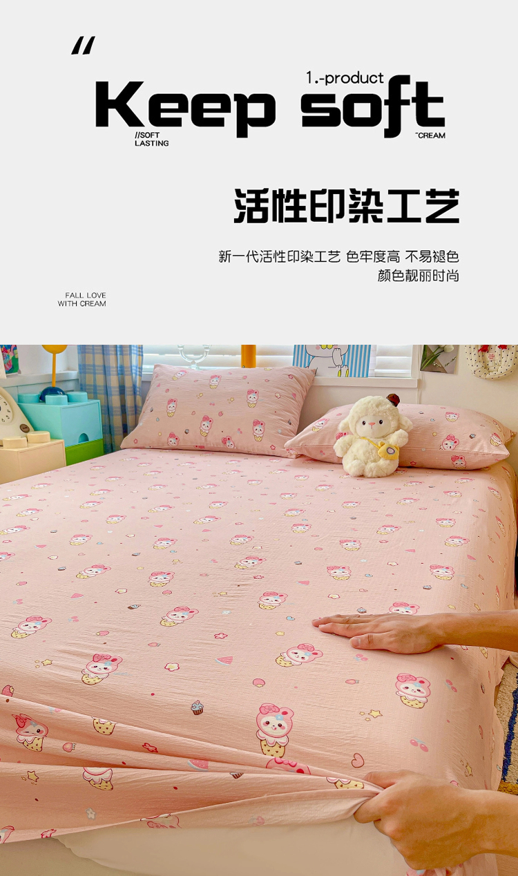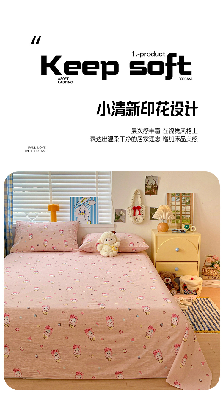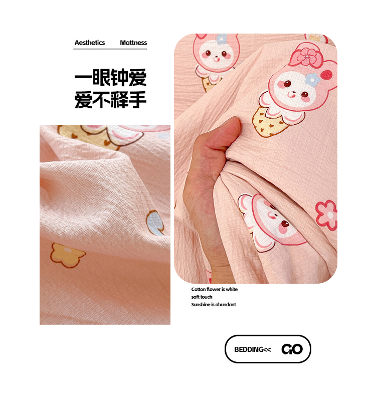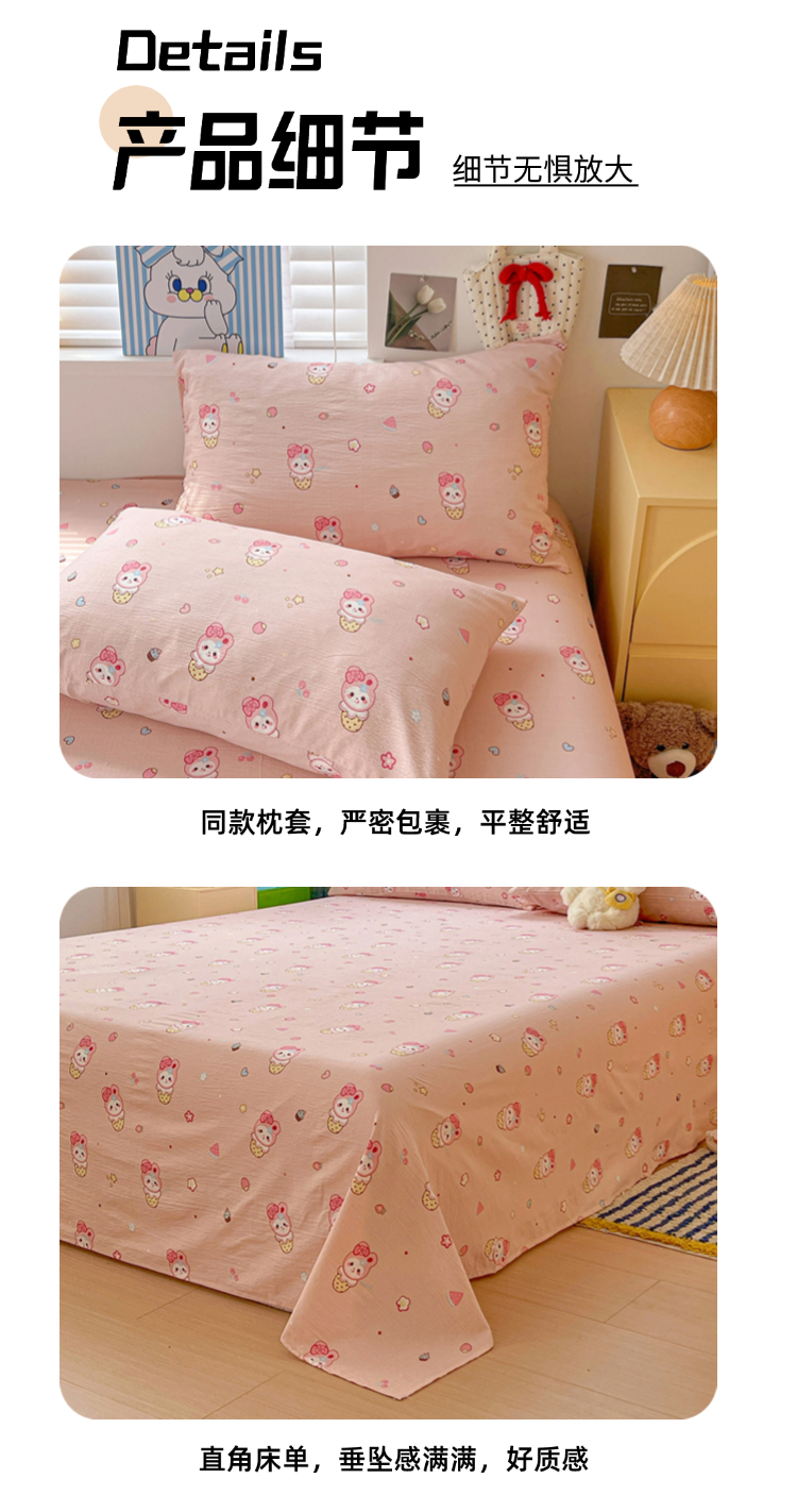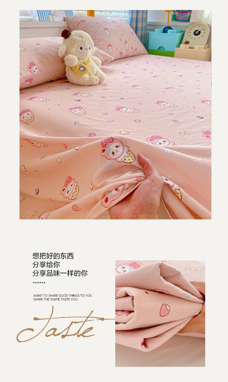 商品名称:维娜斯家纺 2025新款A类水洗棉双层纱床单单件 小兔莉莉