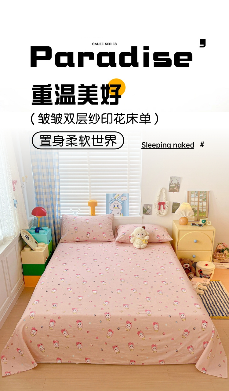 维娜斯家纺 2025新款A类水洗棉双层纱床单单件 小兔莉莉