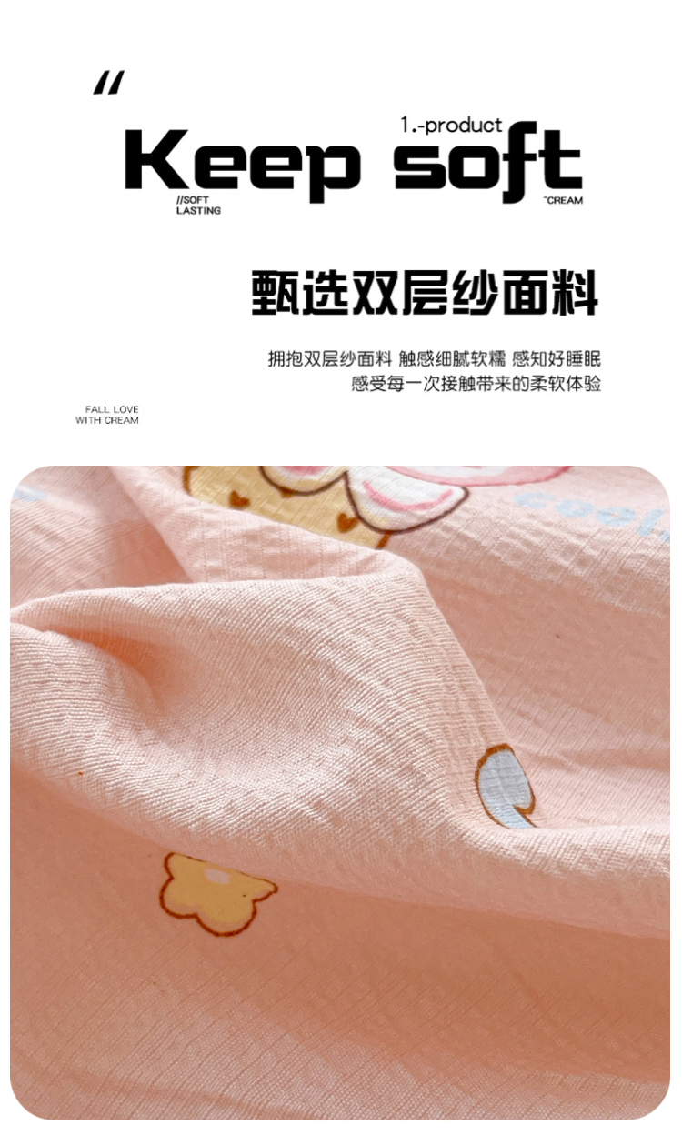 (总)维娜斯家纺 2026新款双层纱旅行酒店隔脏睡袋,奶油草莓,森林派对,小兔莉莉,小熊梦梦