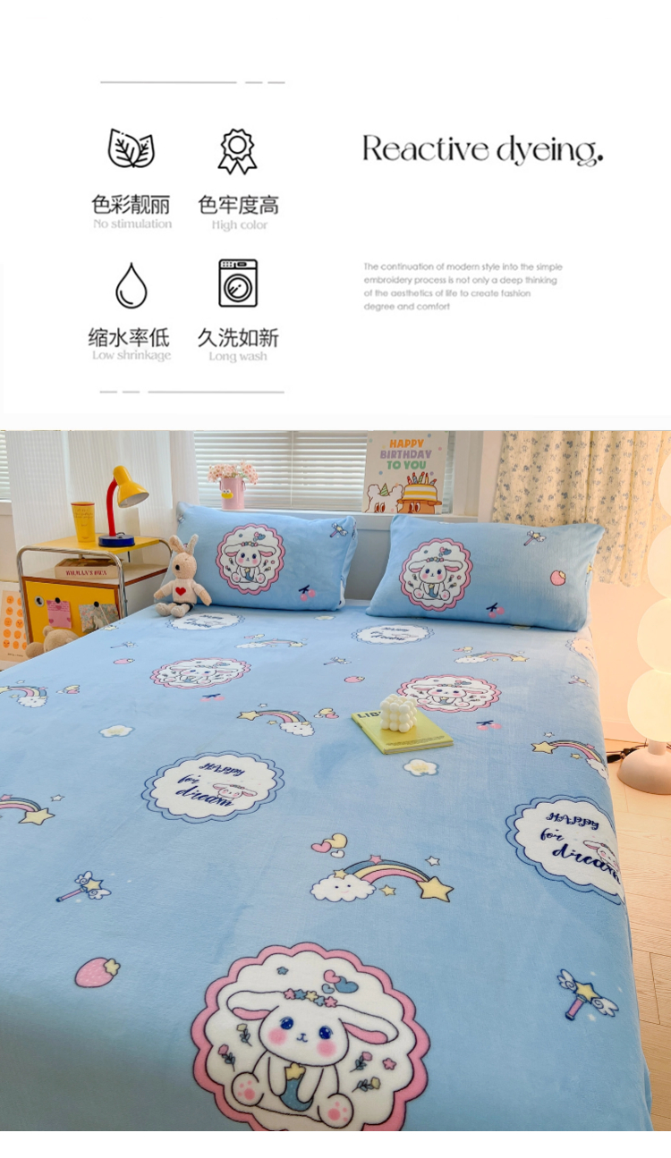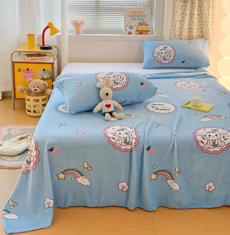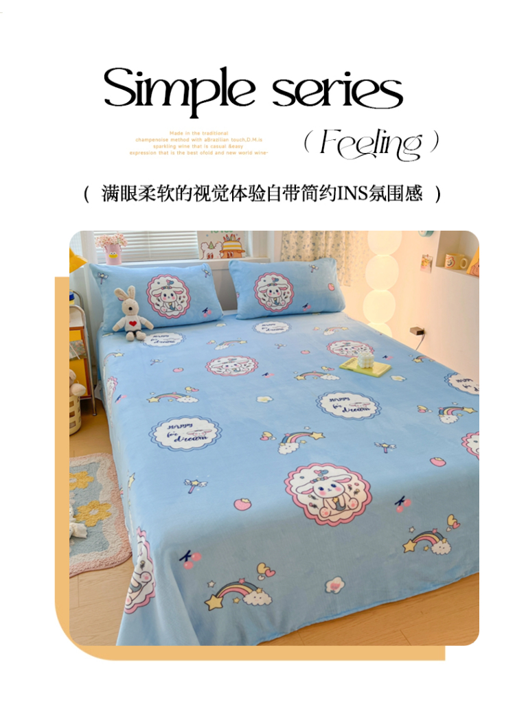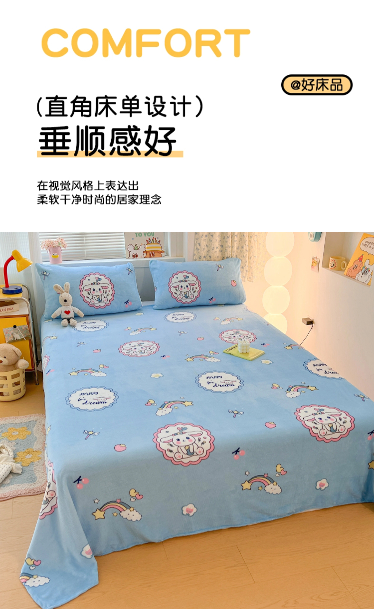 • 91家纺网 家纺一手货源 找家纺 维娜斯家纺 2025新款卡通牛奶绒印花床单单件 萌萌哈奇
