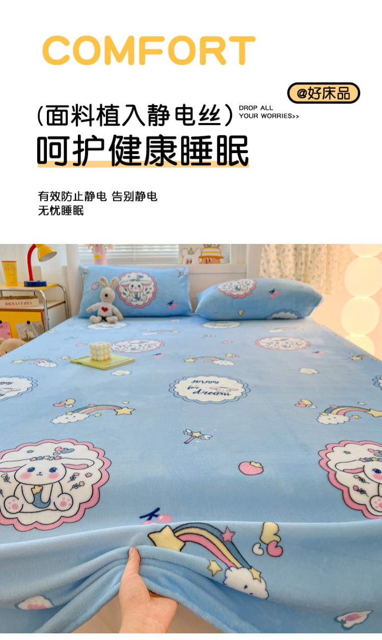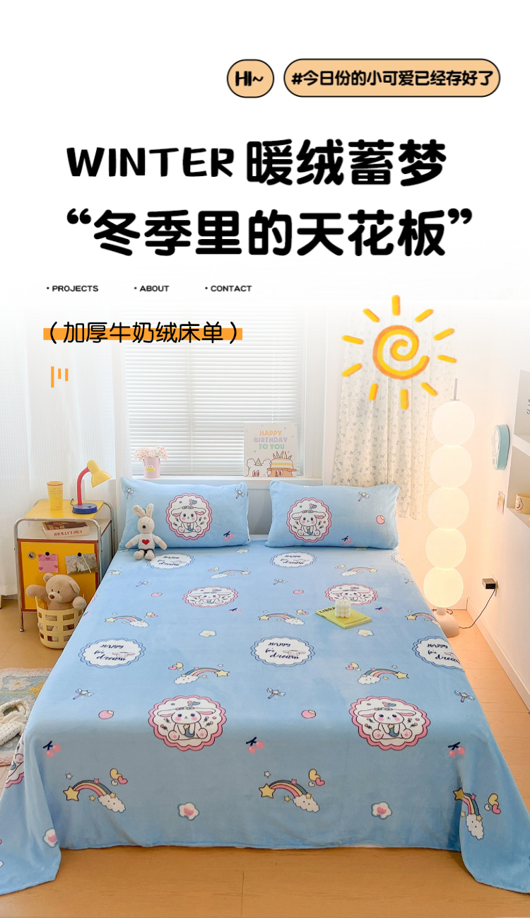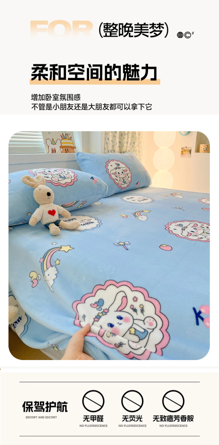 • 91家纺网 家纺一手货源 找家纺 维娜斯家纺 2025新款卡通牛奶绒印花床单单件 萌萌哈奇