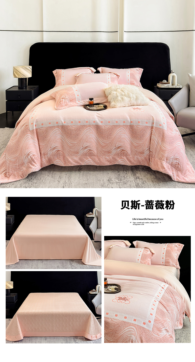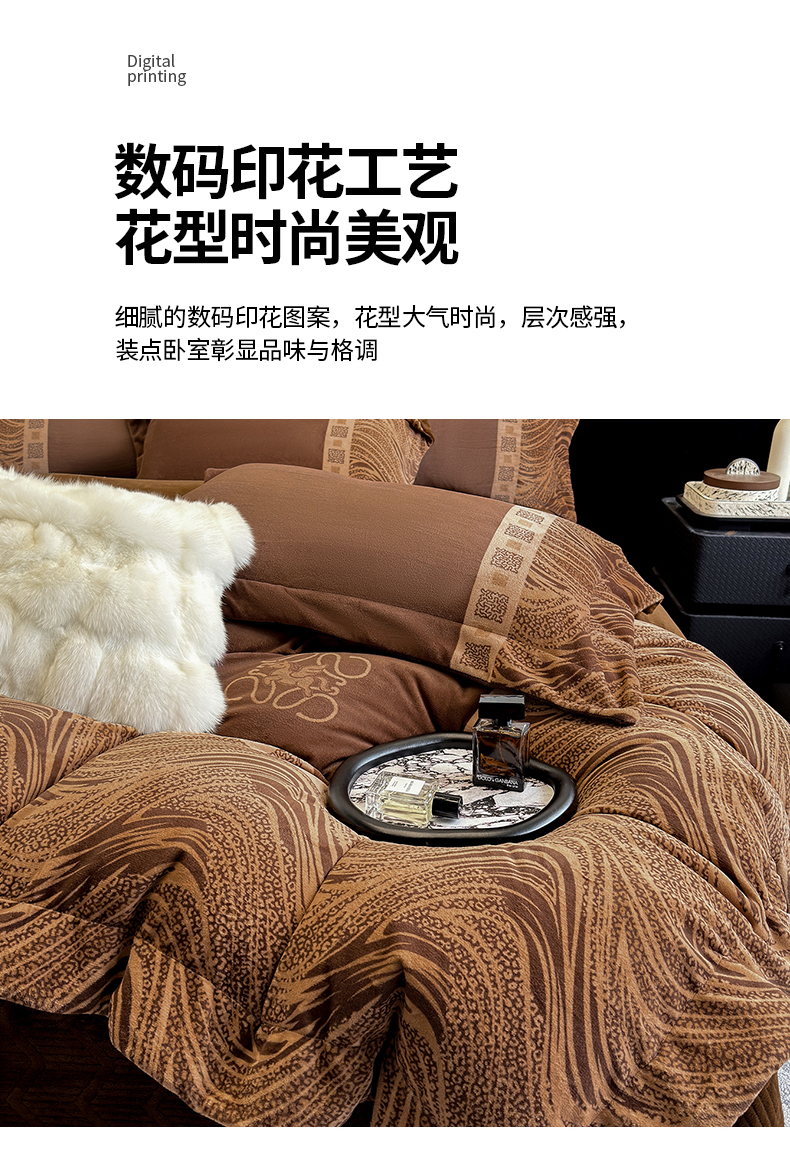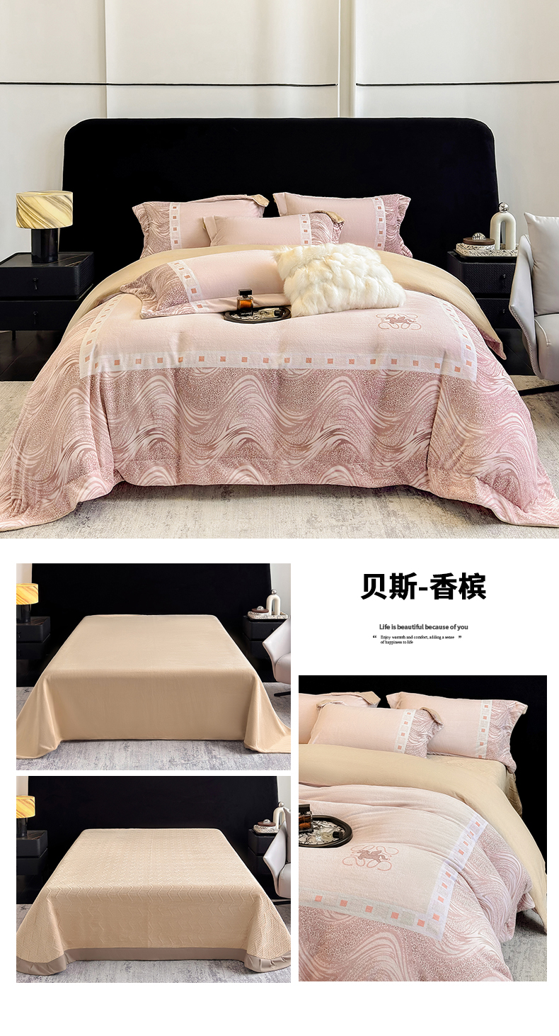 (总)控价 2025新款 专版花型 240克全消光A类数码印花牛奶绒四件套床盖款-贝斯