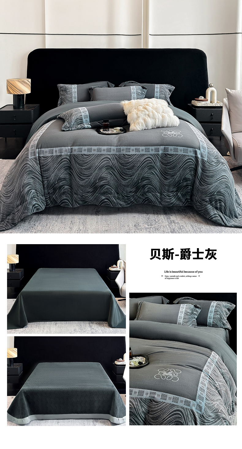 (总)【控价】新方向 2026新款 男士刺绣50s双股全棉贡缎长绒棉四件套-亚瑟,亚瑟-爵士灰,亚瑟-香槟
