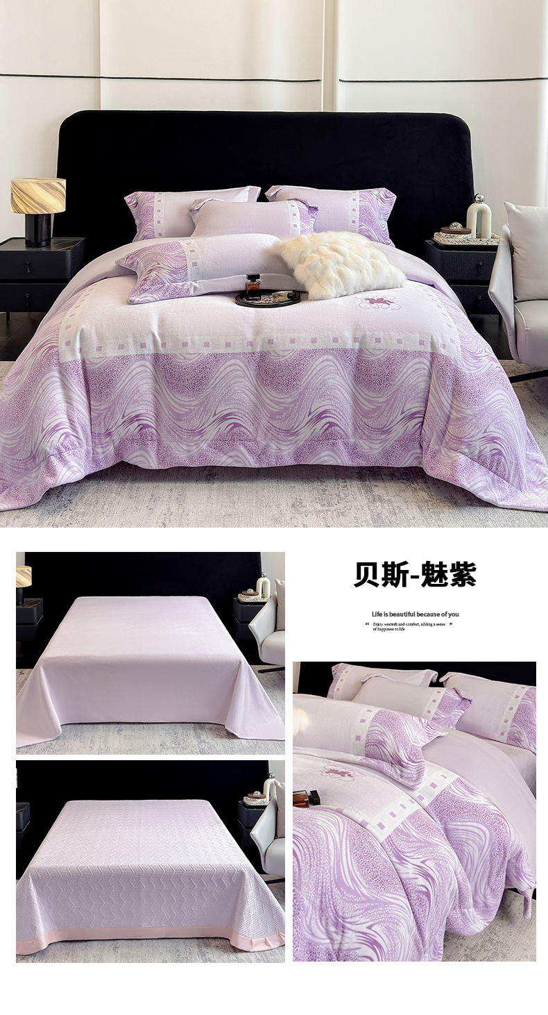 商品名称:(总)控价 2025新款 专版花型 240克全消光A类数码印花牛奶绒四件套床盖款-贝斯