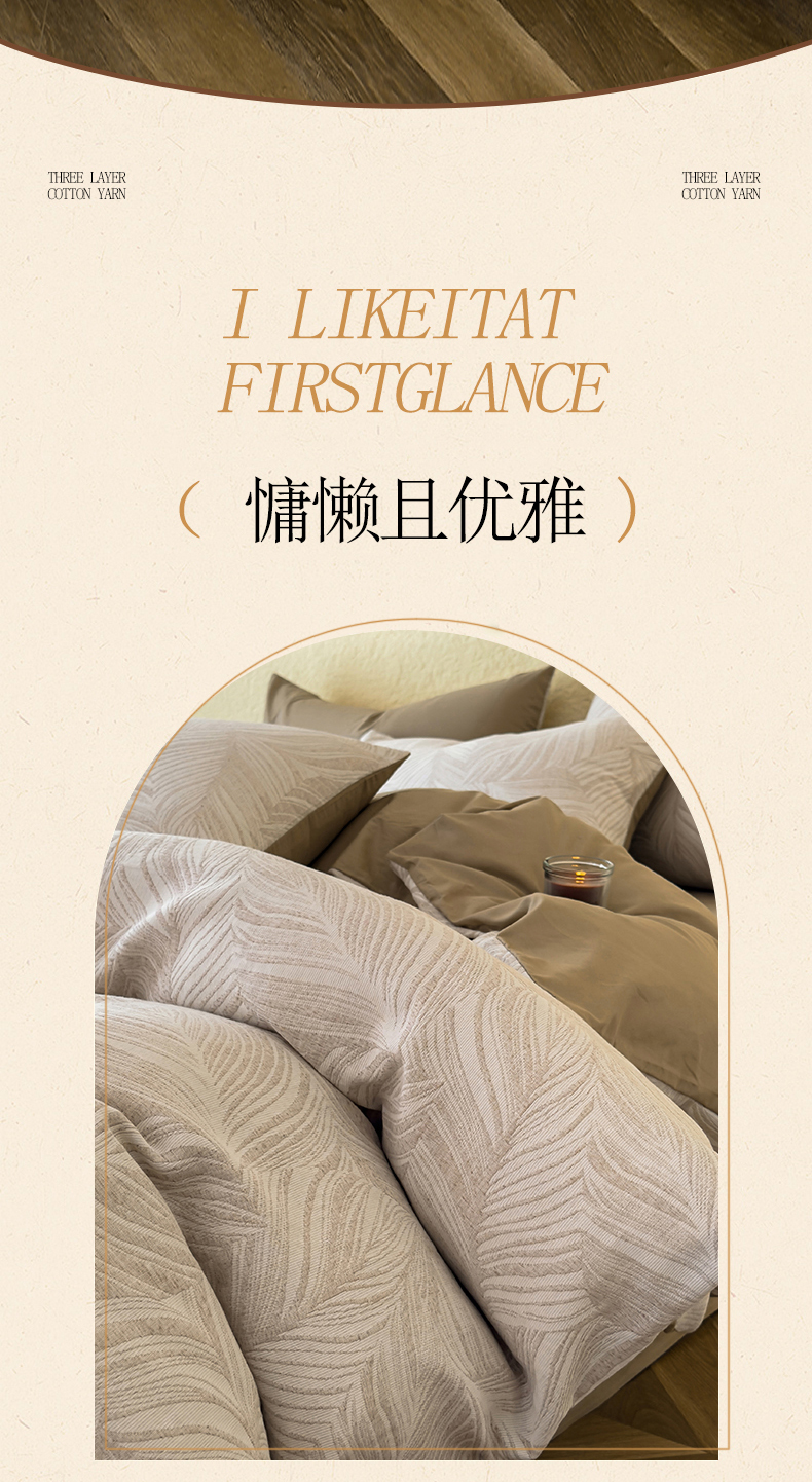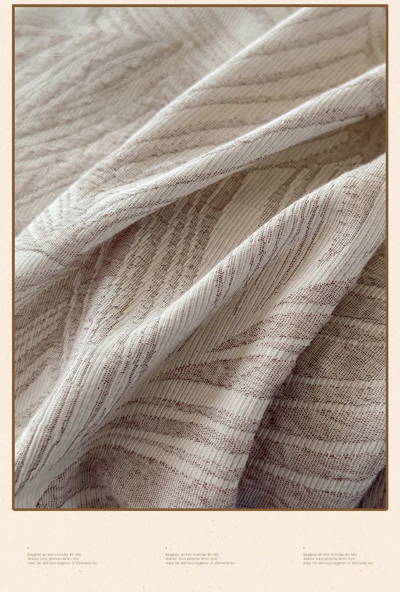 琪格格纺织 2025新款全棉A类色织三层纱提花四件套 三层纱 叶舞