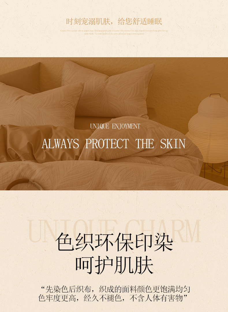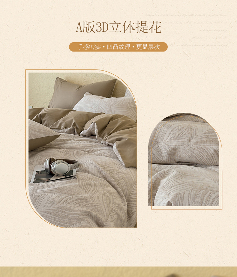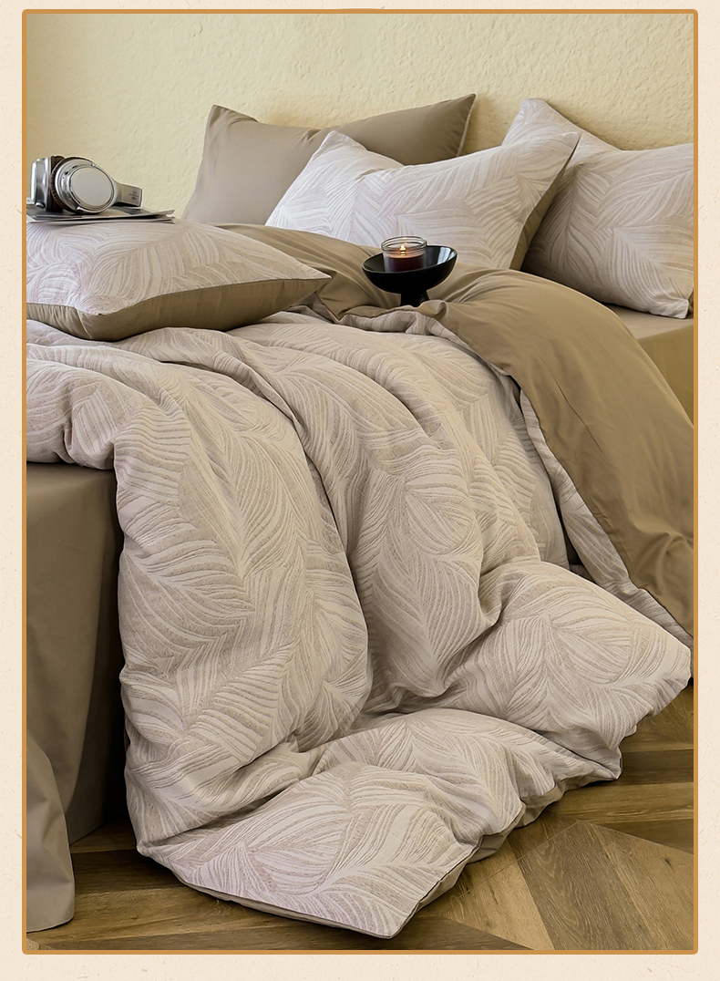 商品名称:琪格格纺织 2025新款全棉A类色织三层纱提花四件套 三层纱 叶舞