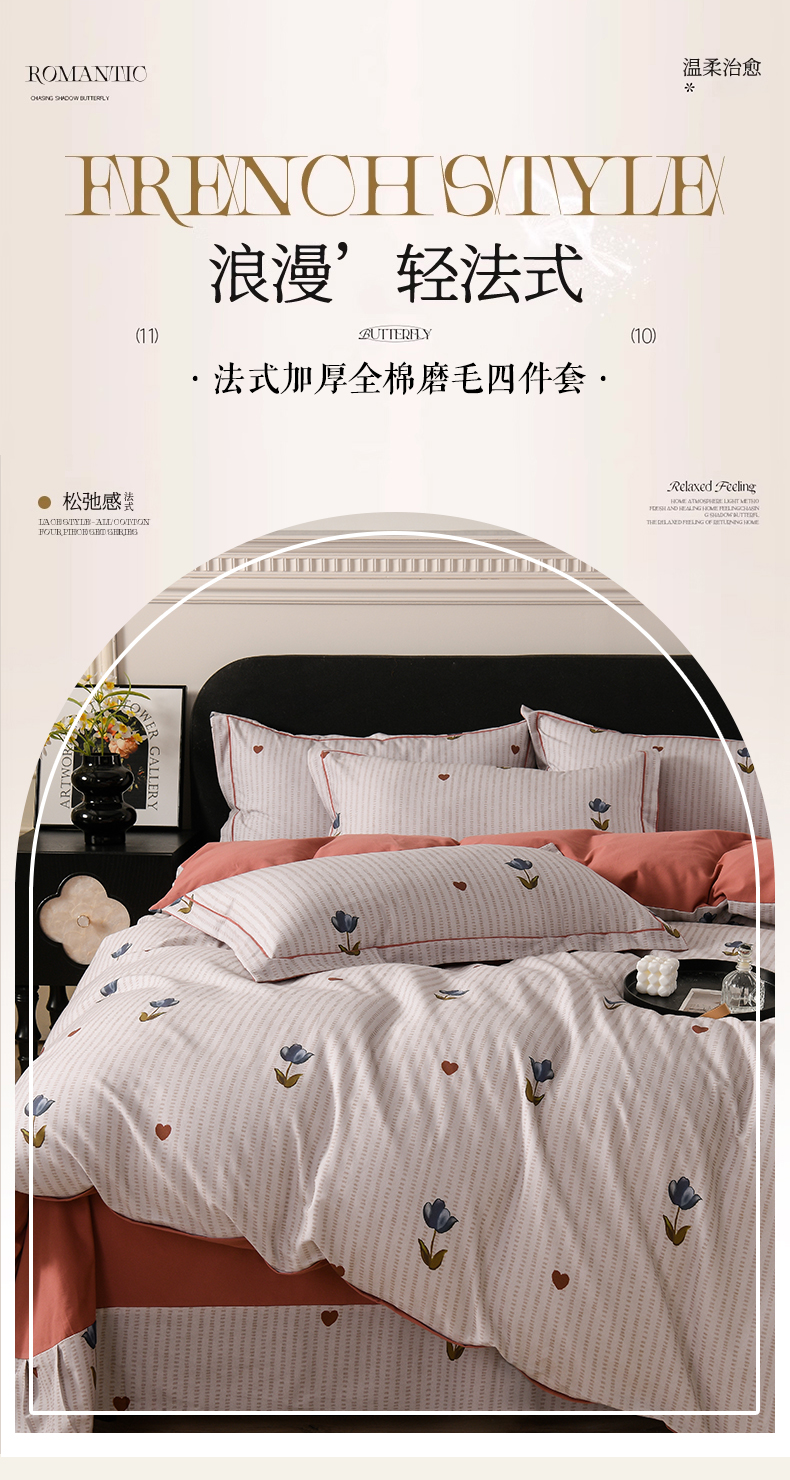 当前位置: 91家纺网 > 商品网购 > 床品套件 > 四件套 > 全棉普通四件套 > 金昱纺 2025新款法式加厚全棉纯棉磨毛四件套惜诺-米