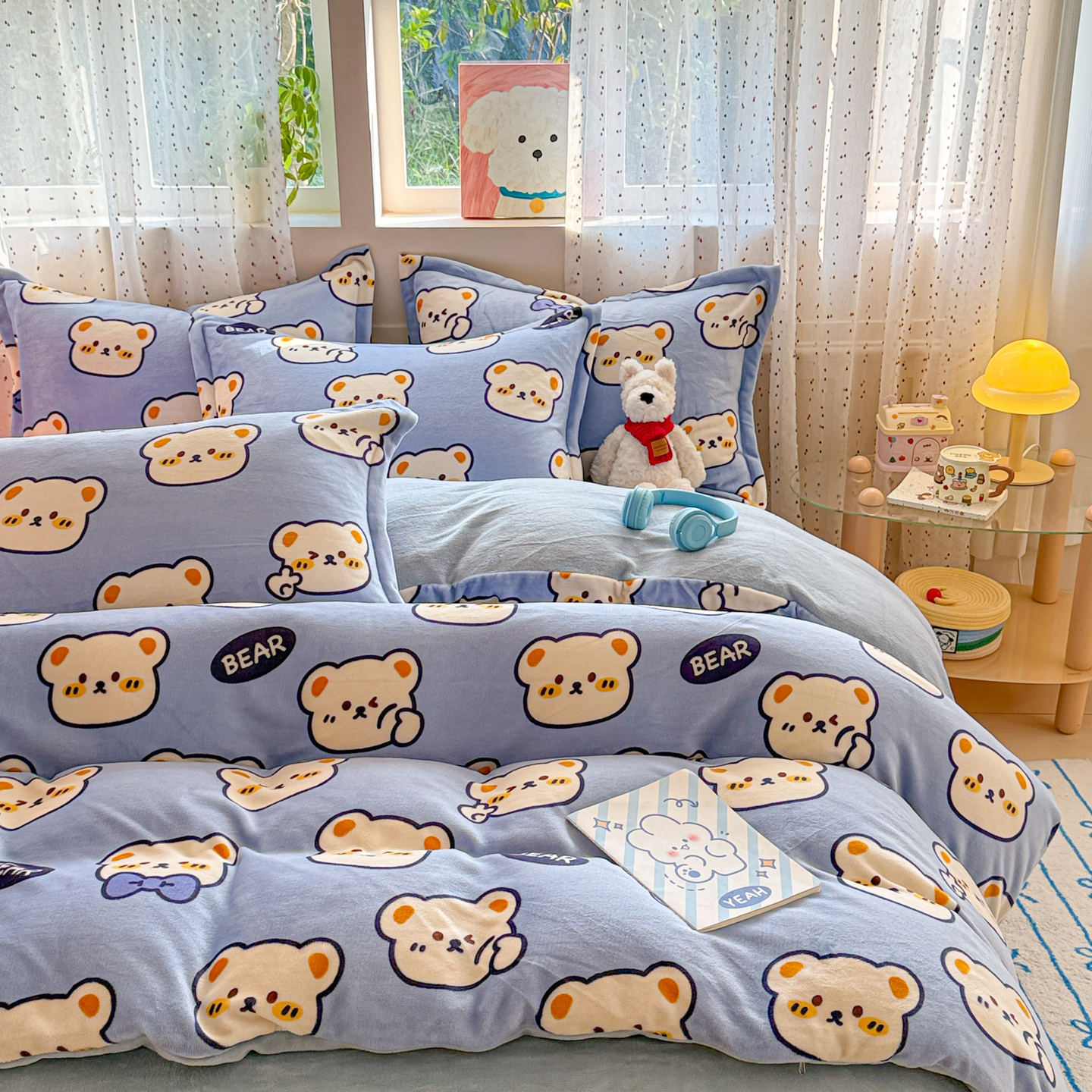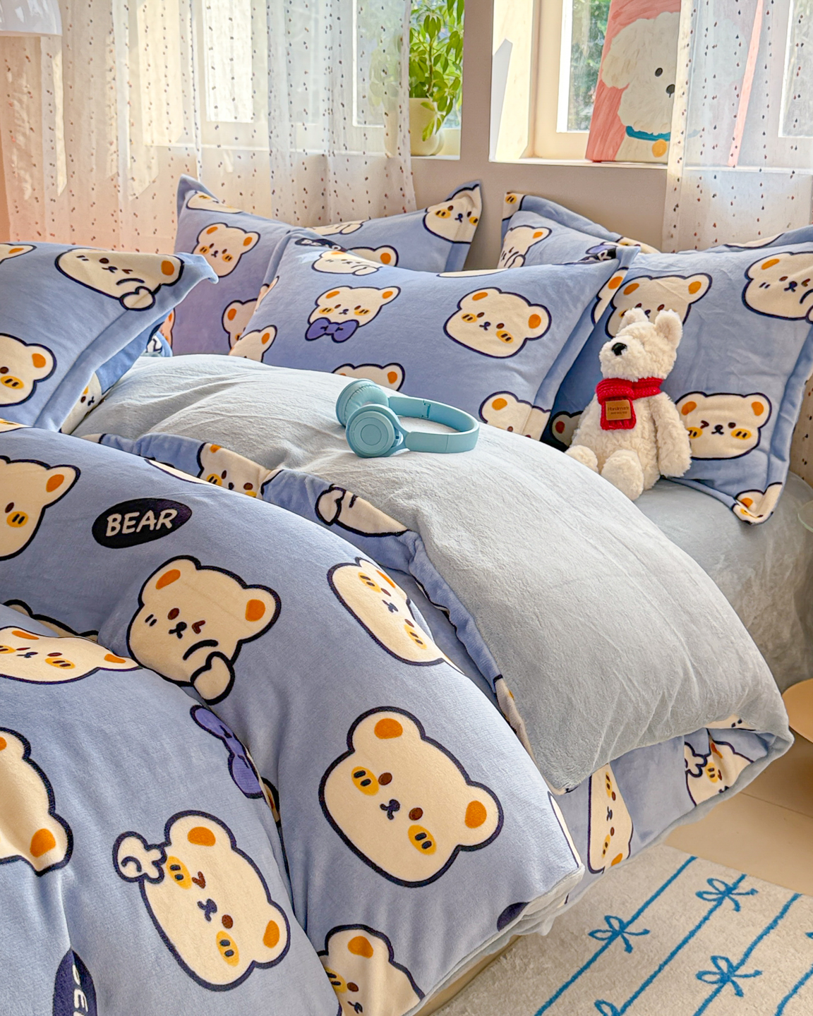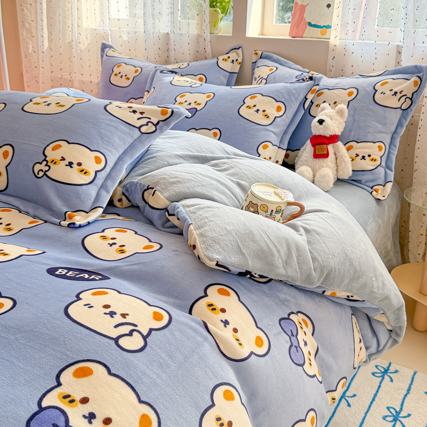 商品名称:慕尚家纺 2025新款田园花卉类印花牛奶绒高克重单被套 表情熊