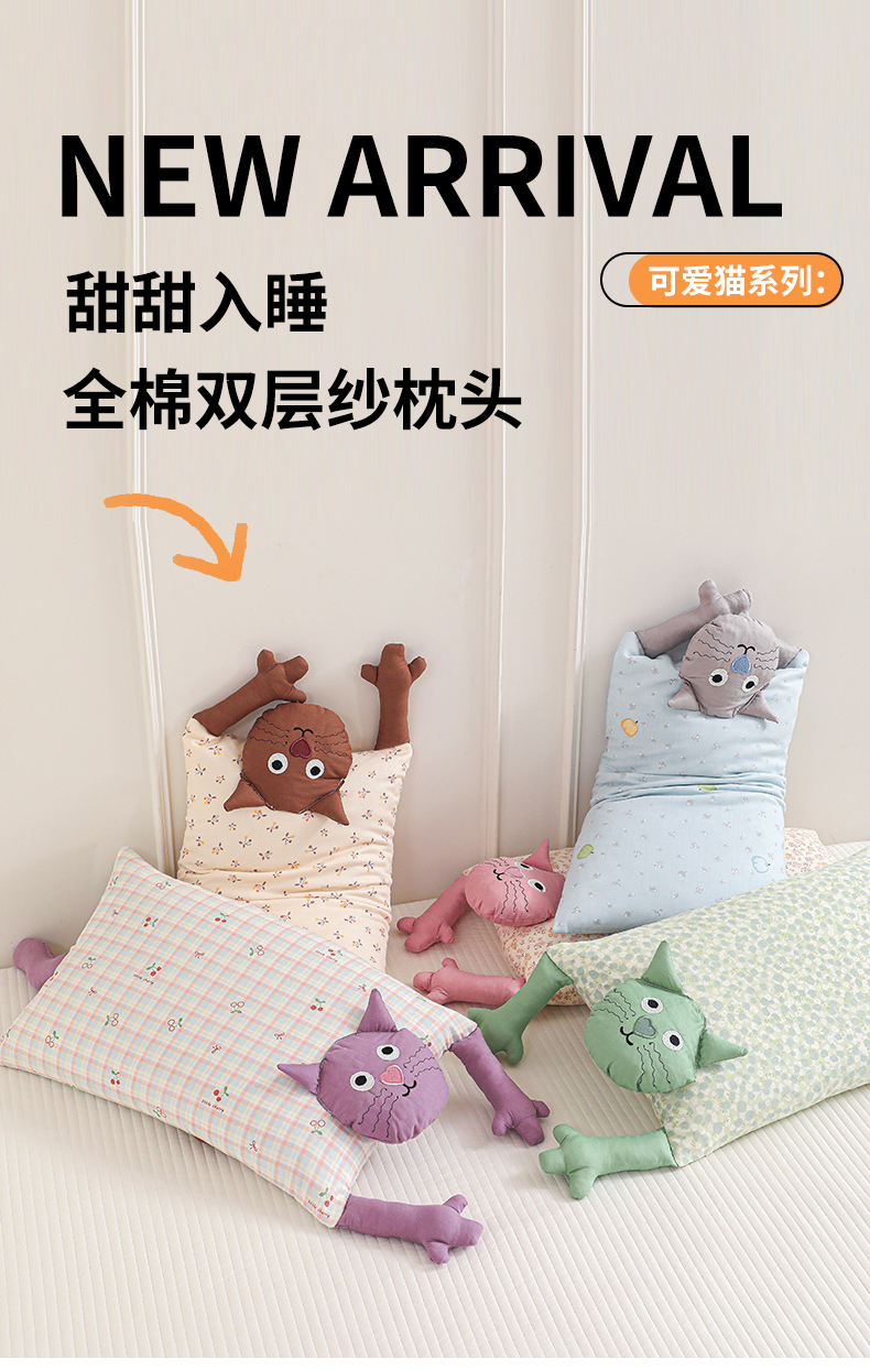 商品名称:大熊枕芯 2025新款哇塞猫枕芯荞麦枕羽丝绒枕头枕芯 哇塞猫-紫