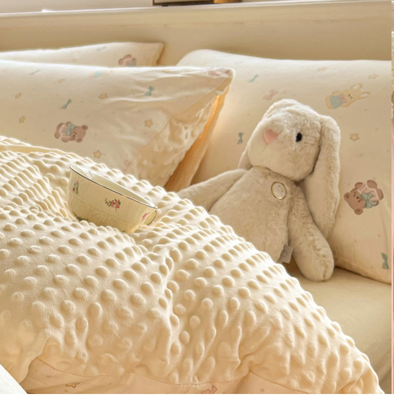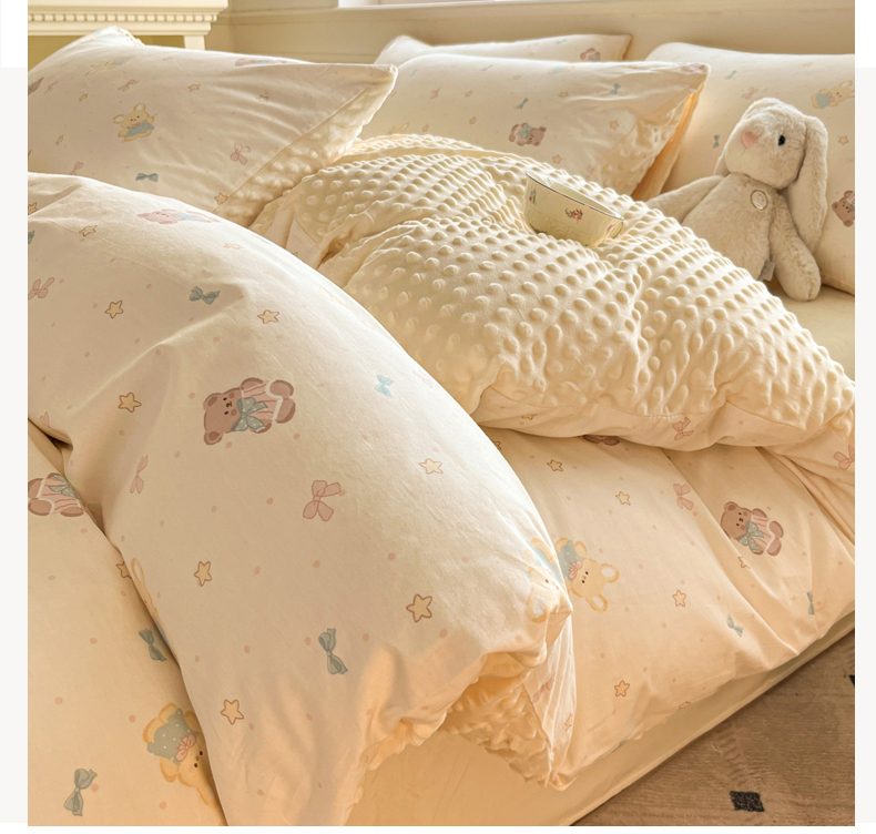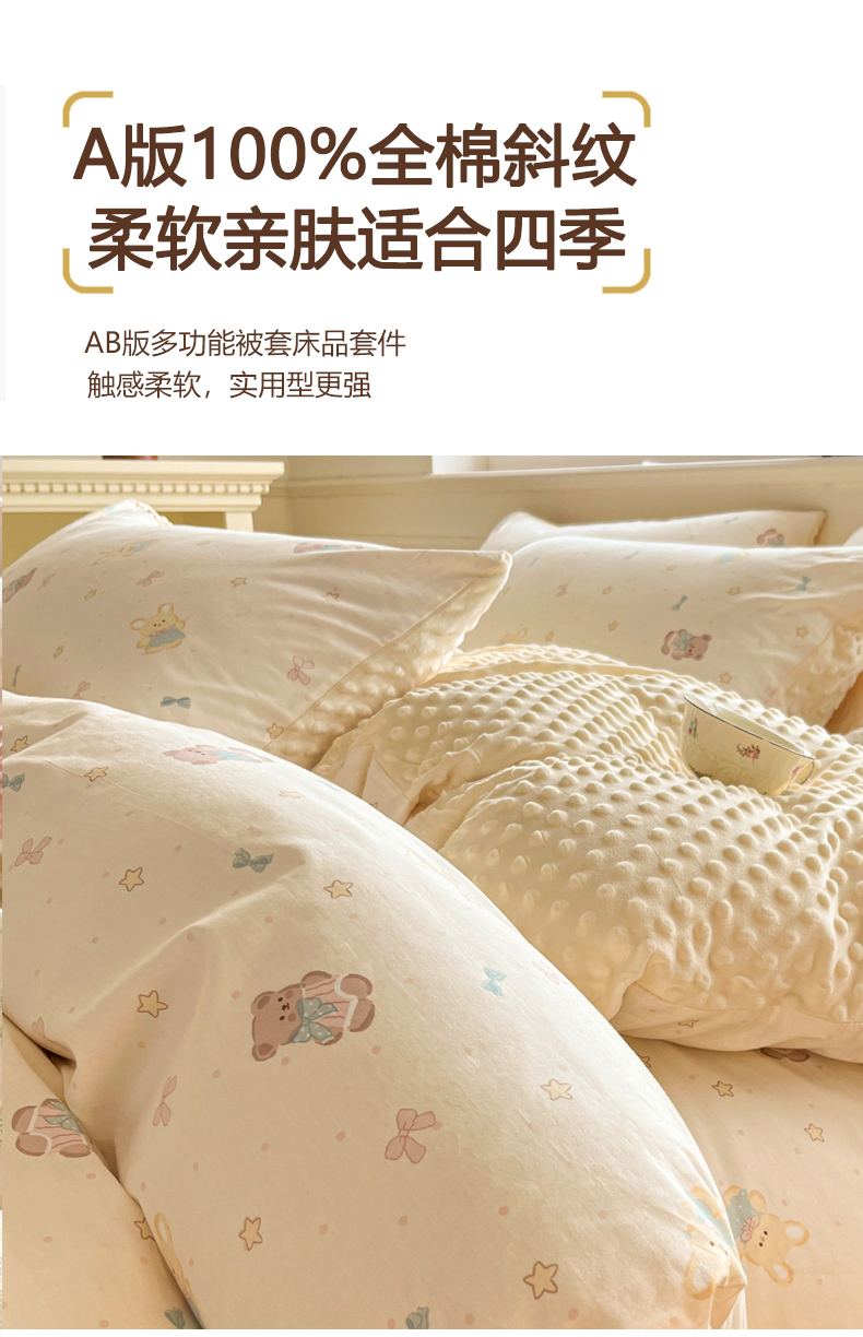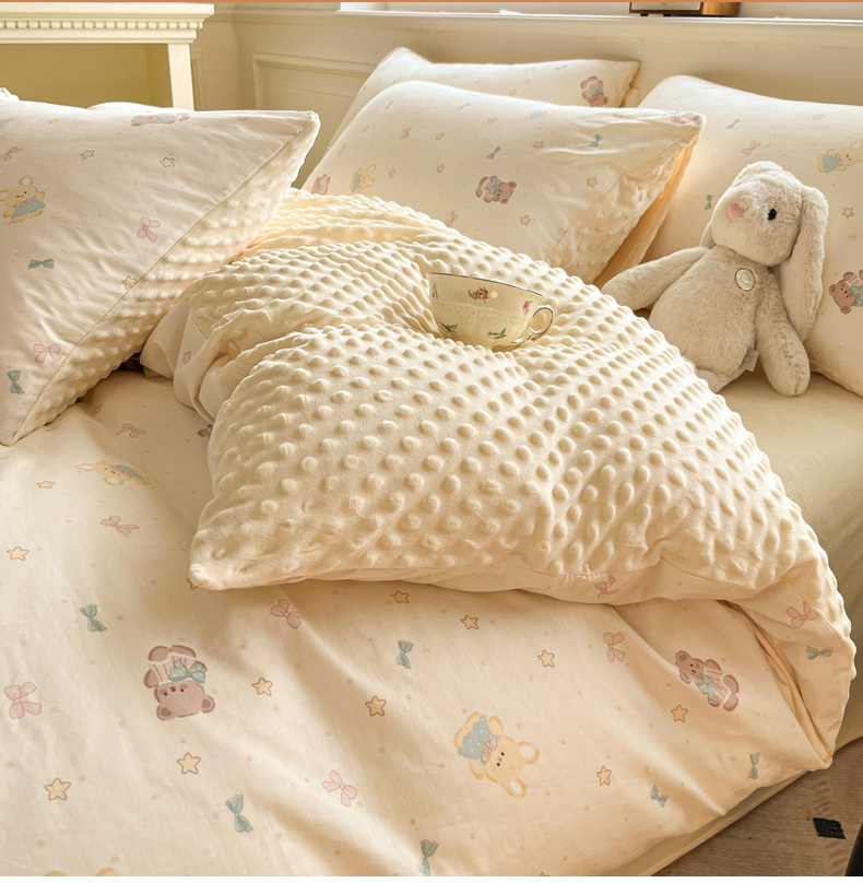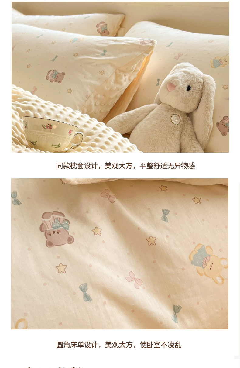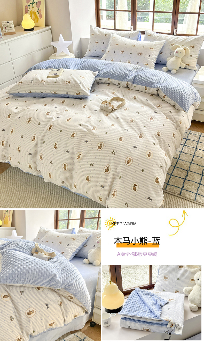 当前位置: 91家纺网 > 商品网购 > 床品套件 > 四件套 > 全棉普通四件套 > 麦伦家居 2025秋冬新品多功能床品全棉+豆豆绒四件套卡通小清新系列 童趣米
