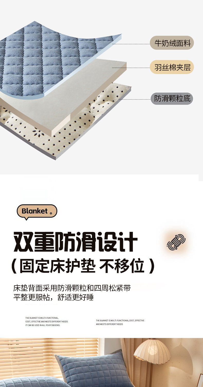 (总)芊梵床垫 2025新款牛奶绒褥子系列-无烫画版,宾利蓝,豆沙粉,抹茶绿,奶油白,时尚灰,组合