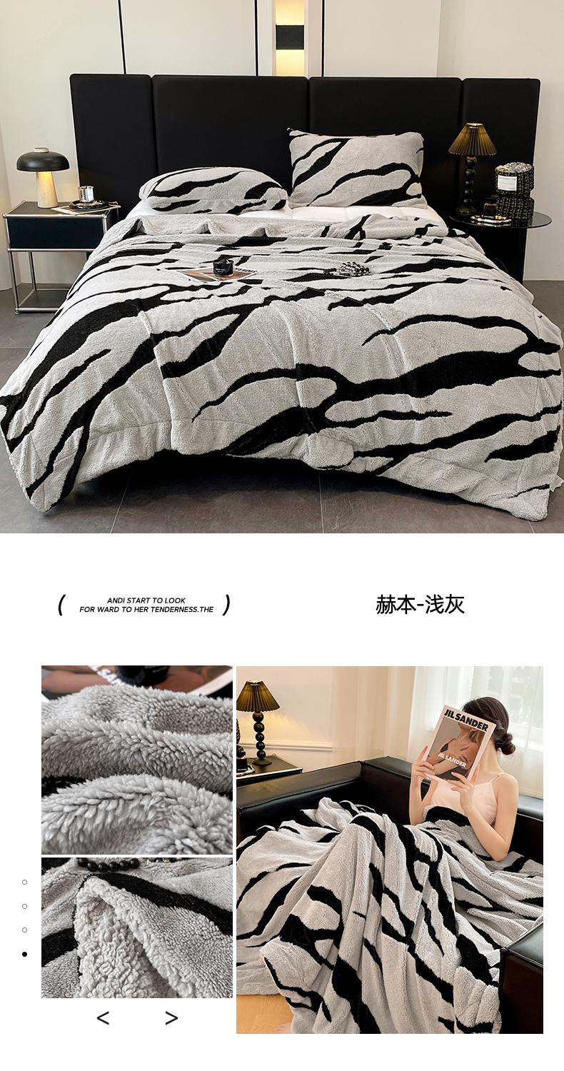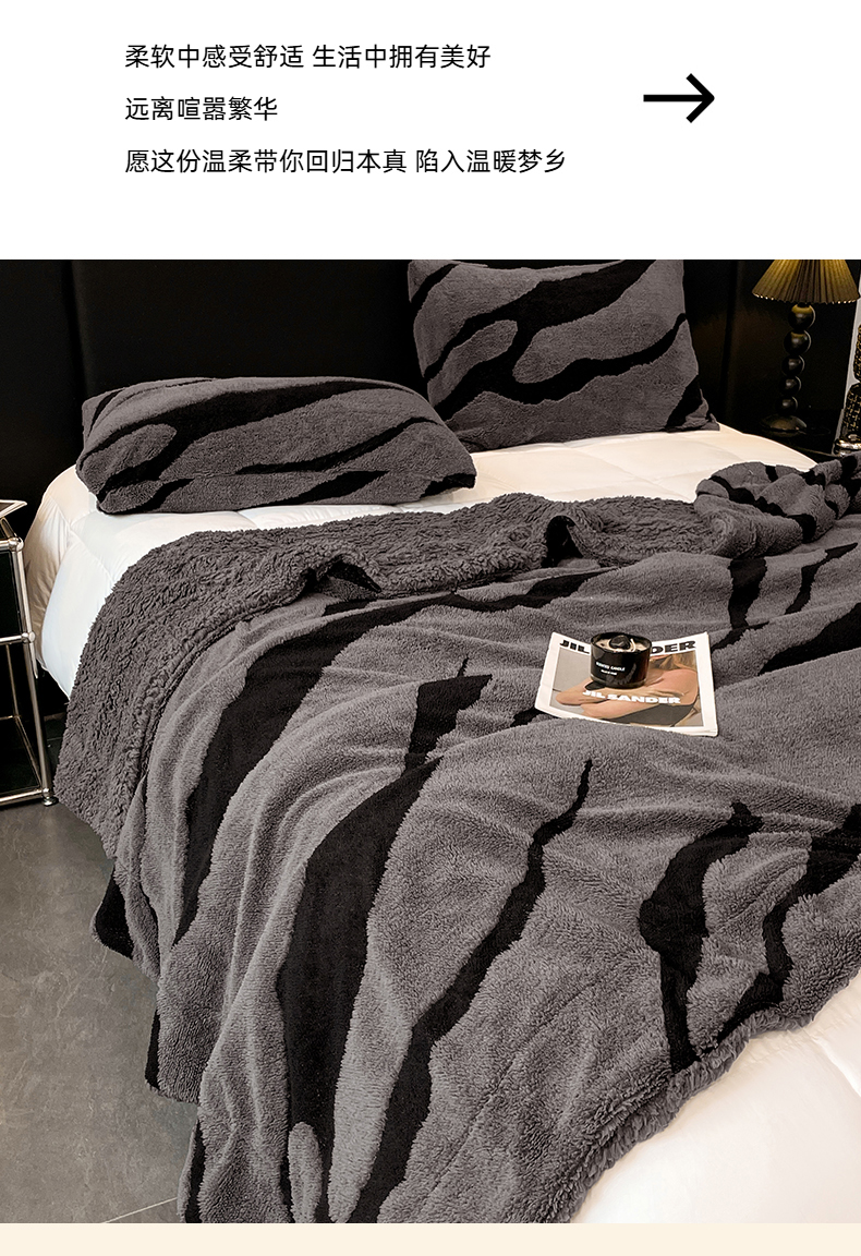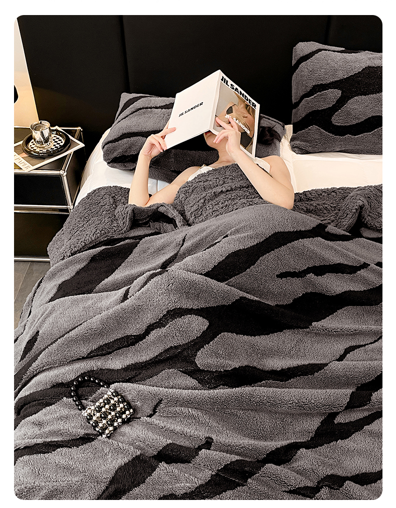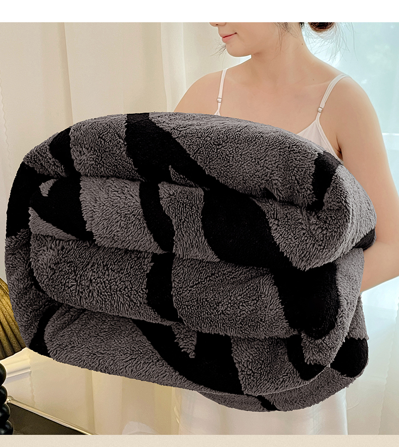 楼兰公主毛毯专供 2025爆款阳离子赫本双层单层羊羔绒跨境绒毯 赫本-深灰