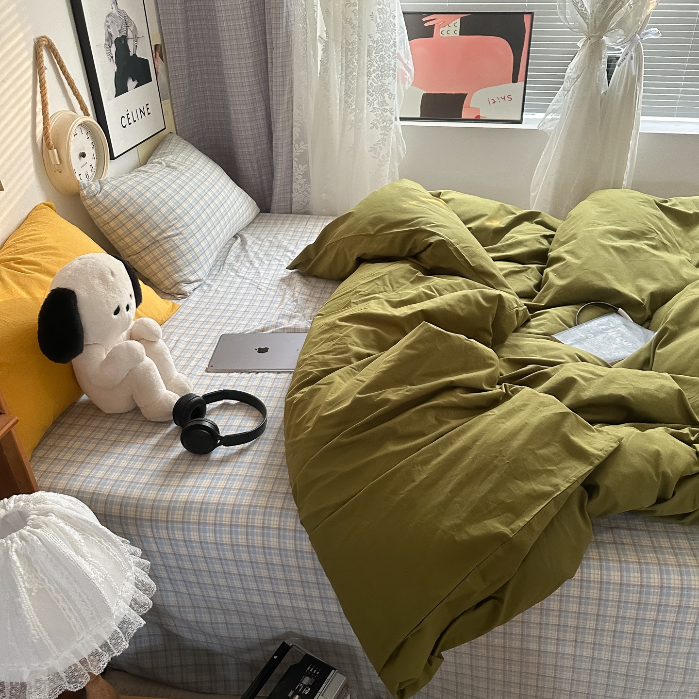当前位置: 91家纺网 > 商品网购 > 床品套件 > 四件套 > 水洗棉四件套 > (总)对白 2025新款全棉色织水洗棉四件套-抹茶冰淇淋【提供买家秀】