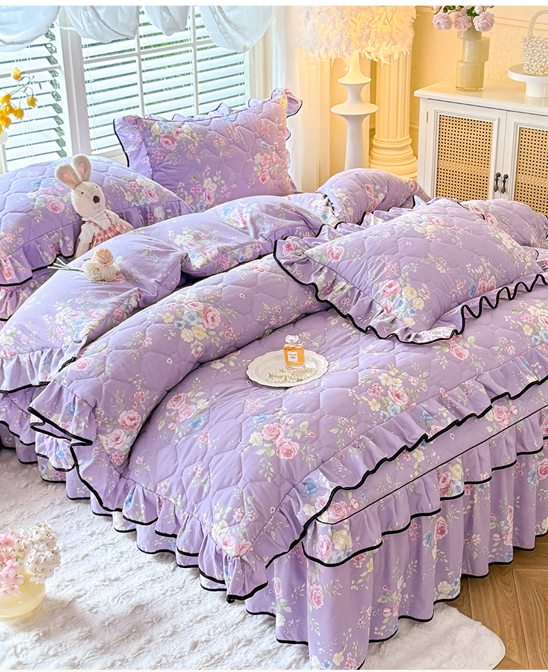 商品名称:优家居 2025新品水洗棉全夹棉床裙四件套韩版糯糯棉水洗皱皱纱床罩花边被套枕套直播爆款 紫雾花园