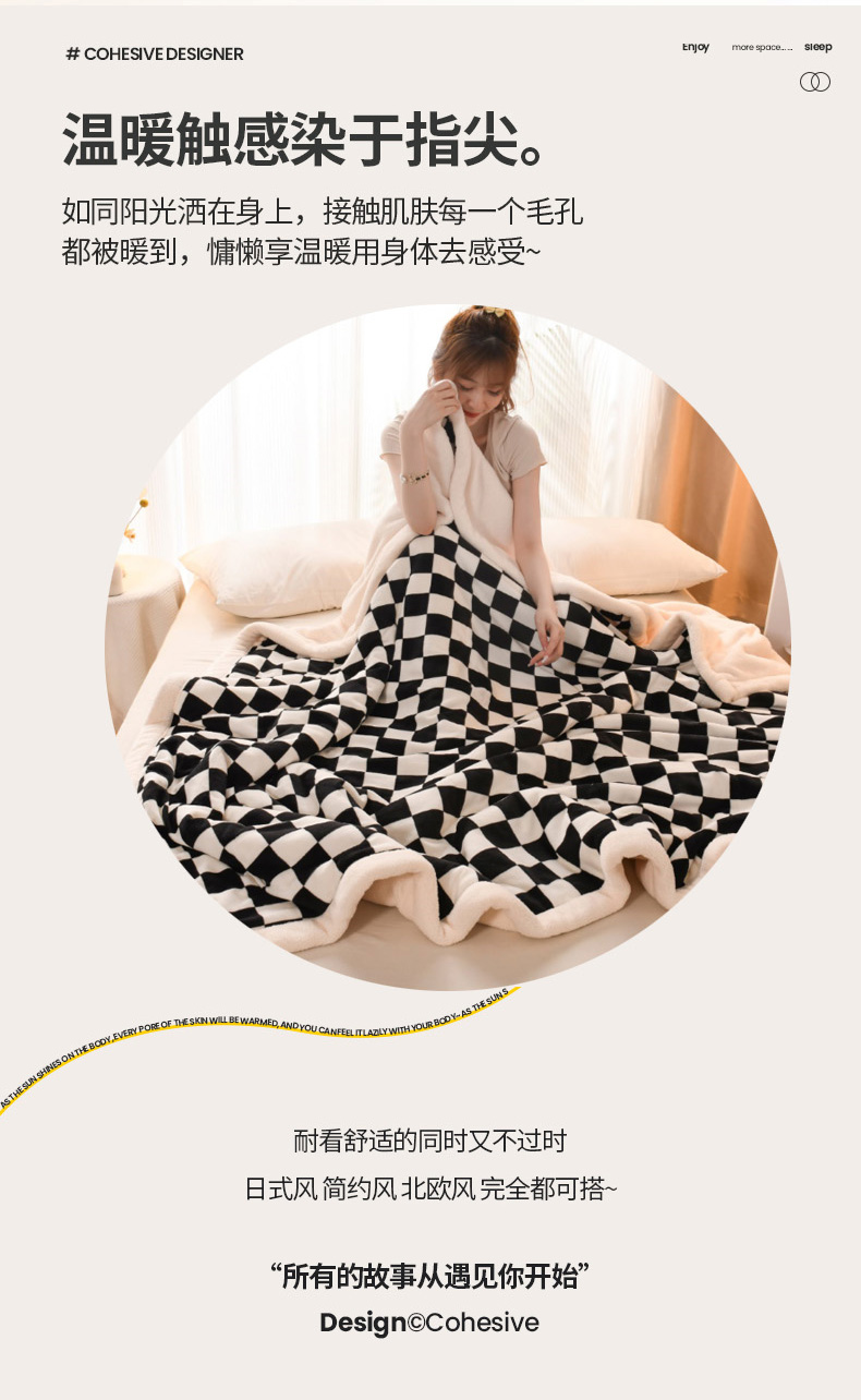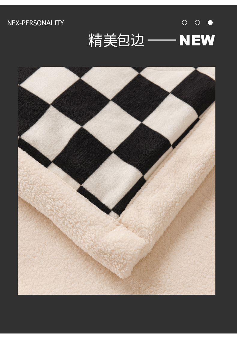 商品名称:印季家纺 2025新款三层夹棉印花牛奶绒毛毯毯子 棋盘格-黑-羊羔绒