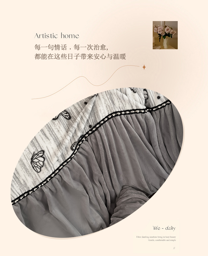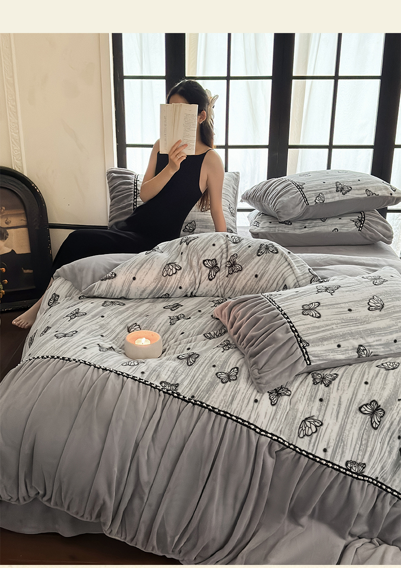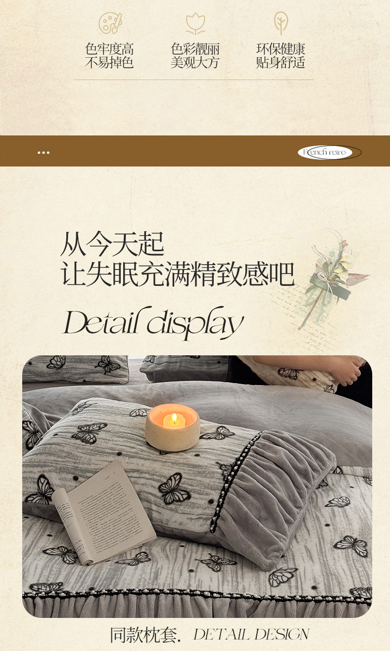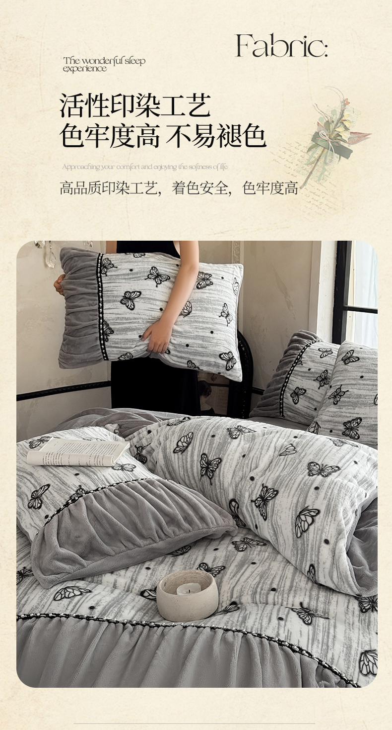 商品名称:纯优家纺 2025新款秋冬法式复古风邹邹边雕花牛奶绒四件套-蝶舞纷飞 蝶舞纷飞-灰色