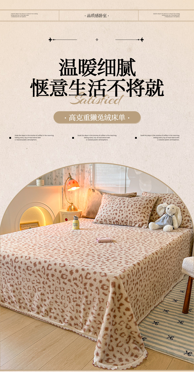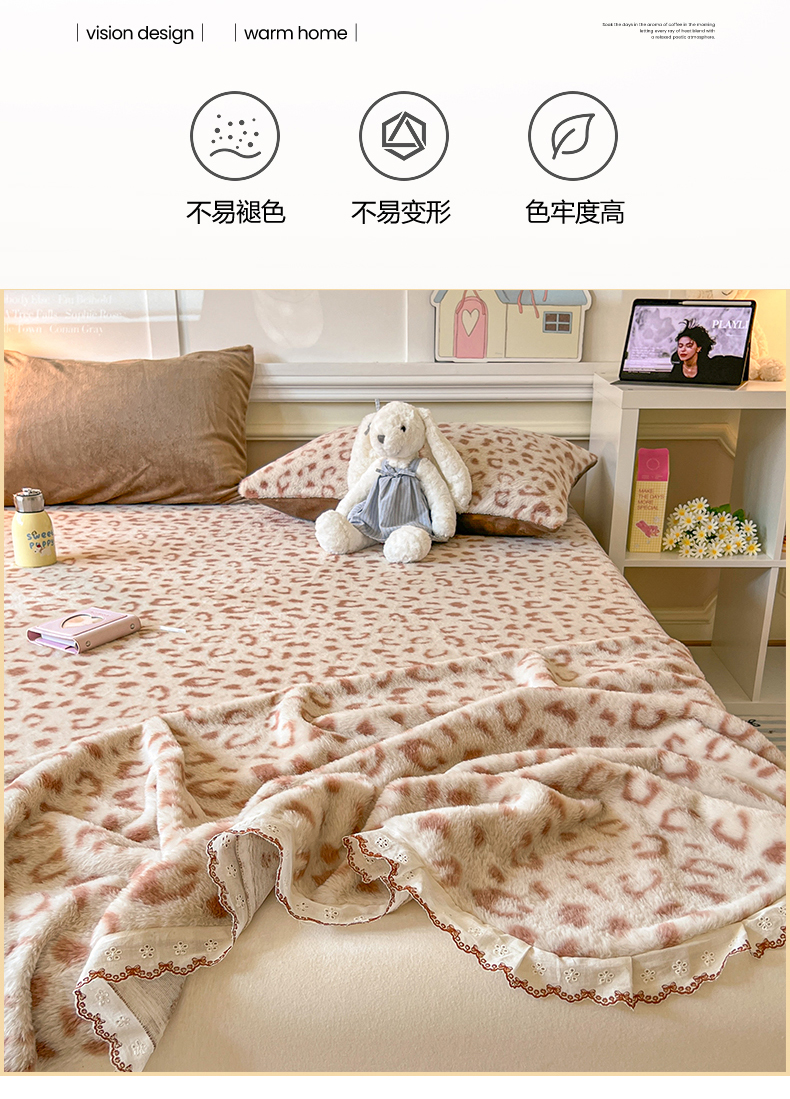 (总)妖妖家纺 2025新款高克重兔毛花边印花单床单 床单单件,爱心,斑点狗,斑点蝴蝶,豹纹,博士狗,蝴蝶飞舞,蝴蝶结,开心熊,狸猫纹,墨痕,木星纹,淘气猫,甜甜兔,枝繁叶茂