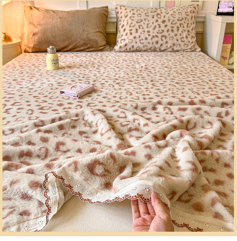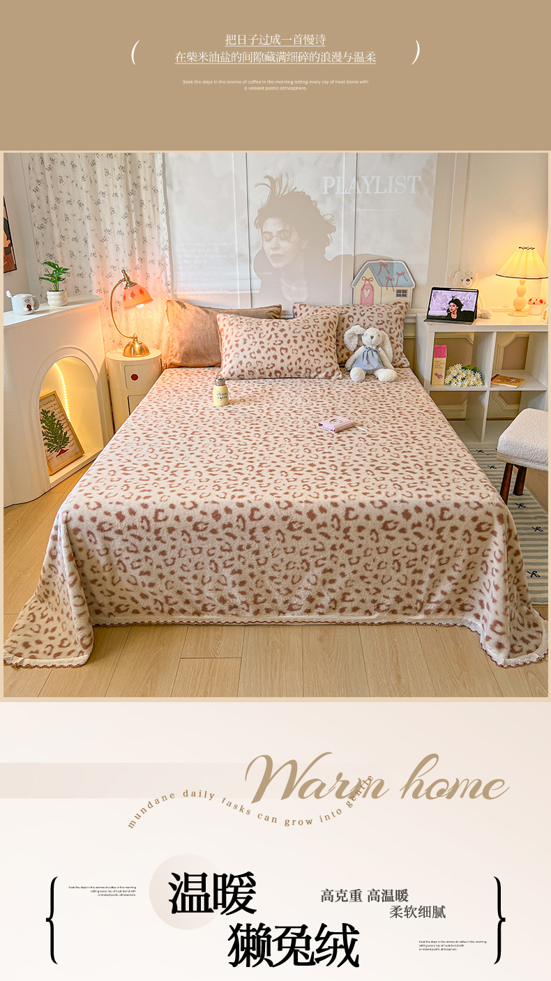 妖妖家纺 2025新款高克重兔毛花边印花单床单 床单单件 狸猫纹