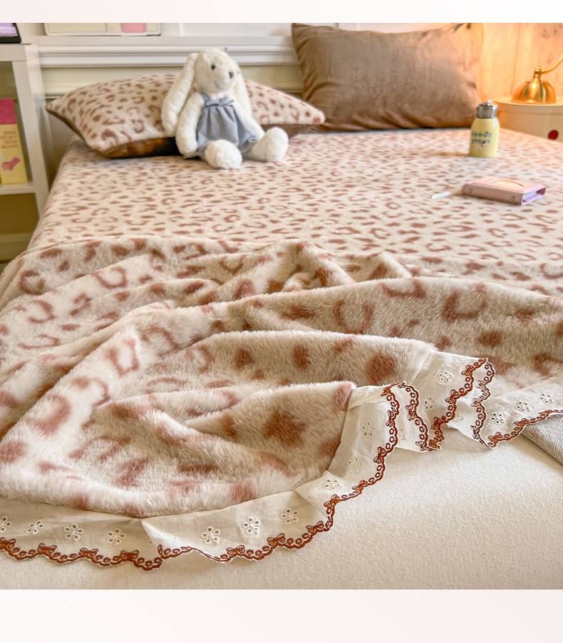 • 91家纺网 家纺一手货源 找家纺 妖妖家纺 2025新款高克重兔毛花边印花单床单 床单单件 狸猫纹