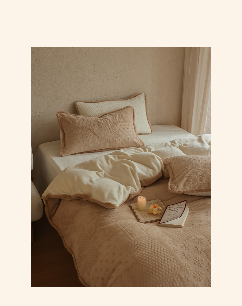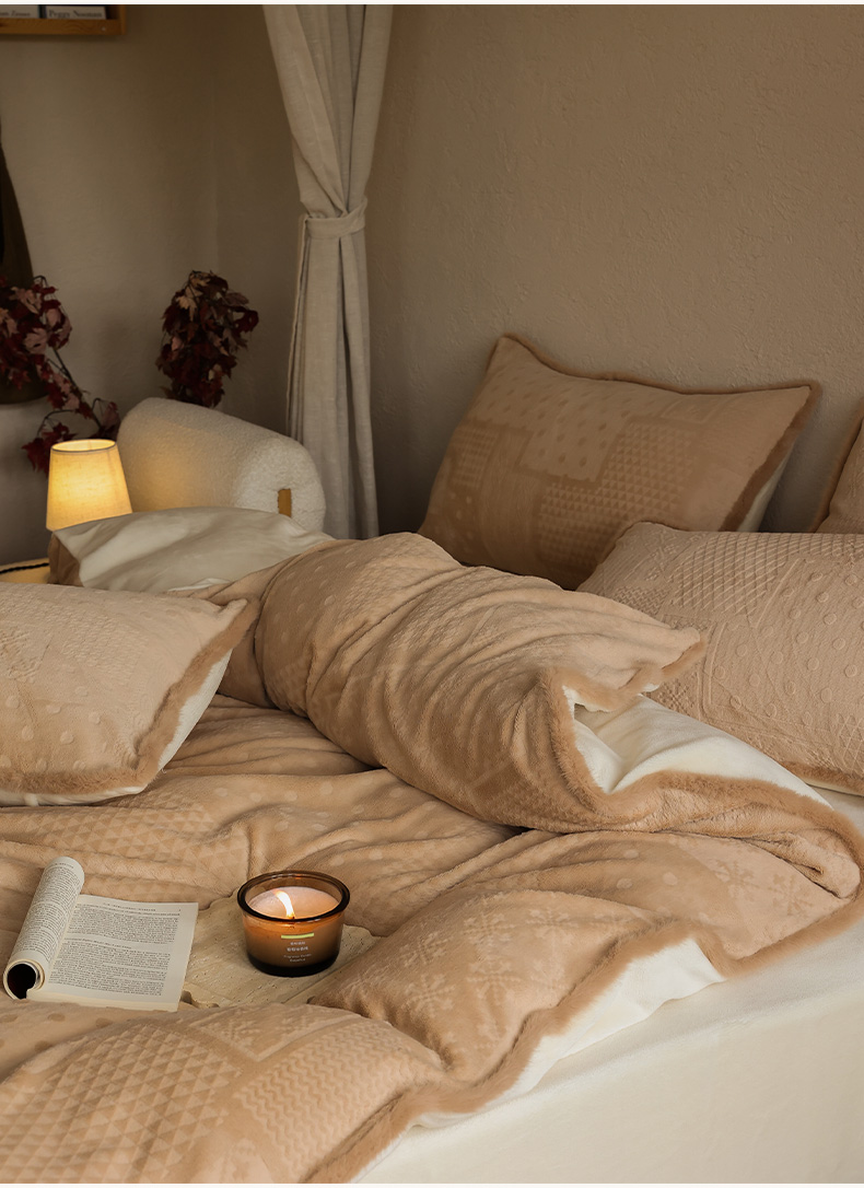 三味舒屋 2025新款简约毛边雕花牛奶绒四件套 雪屿织梦 雪屿织梦-咖