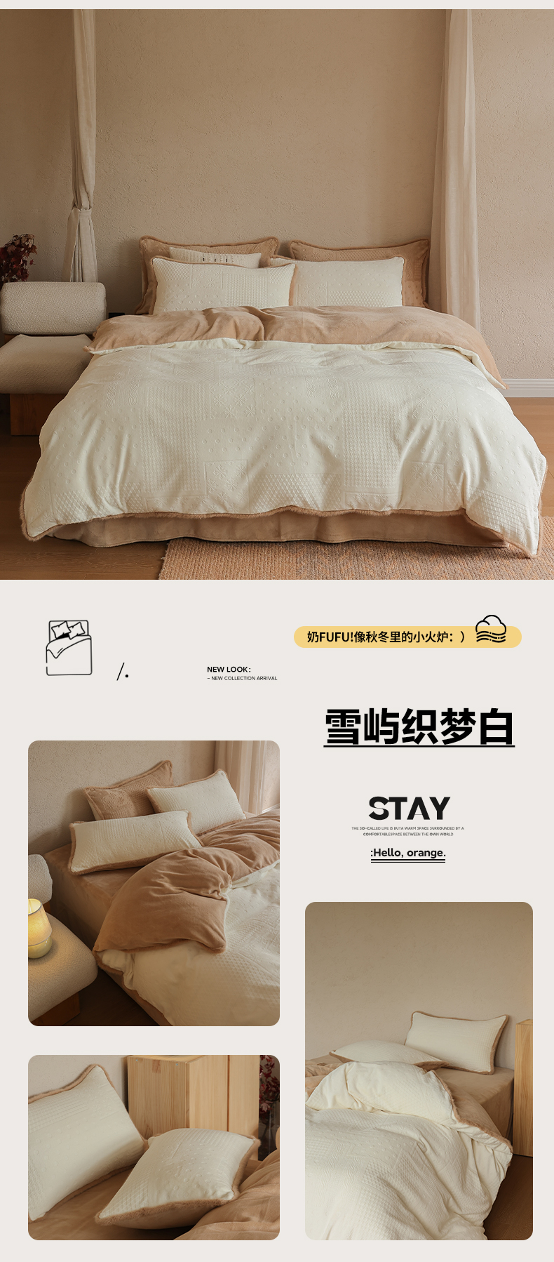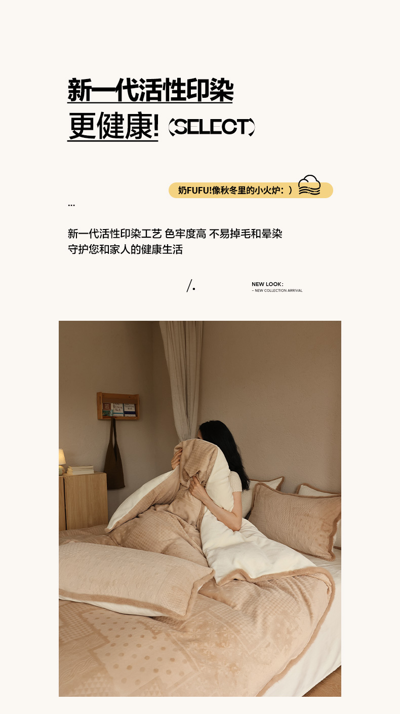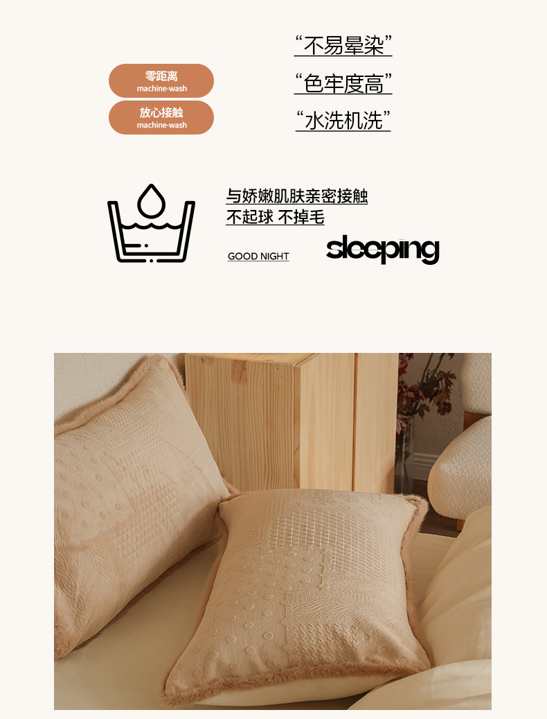 商品名称:三味舒屋 2025新款简约毛边雕花牛奶绒四件套 雪屿织梦 雪屿织梦-咖