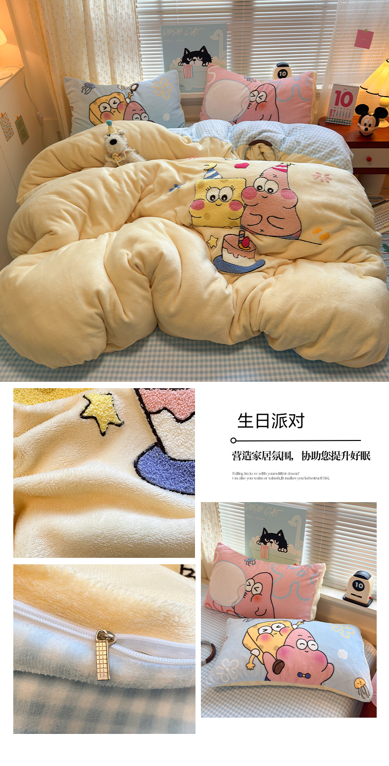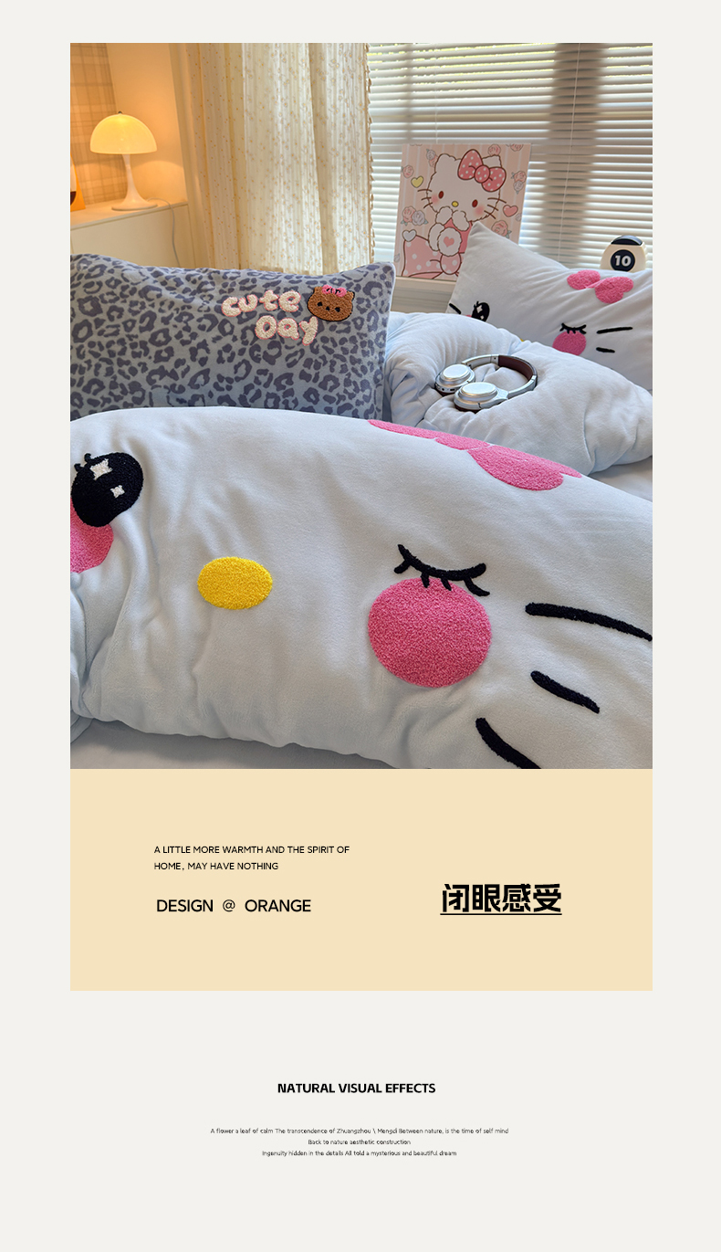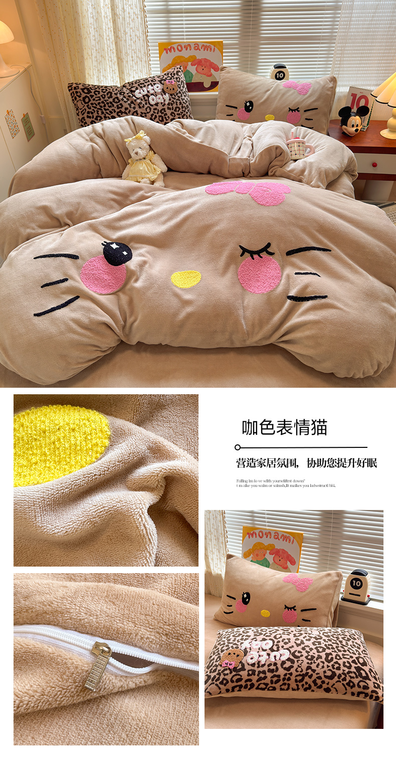 当前位置: 91家纺网 > 商品网购 > 床品套件 > 四件套 > 牛奶绒四件套 > 罗亿家纺 2025新款高克重200g牛奶绒数码印花毛巾绣卡通四件套 粉粉表情猫