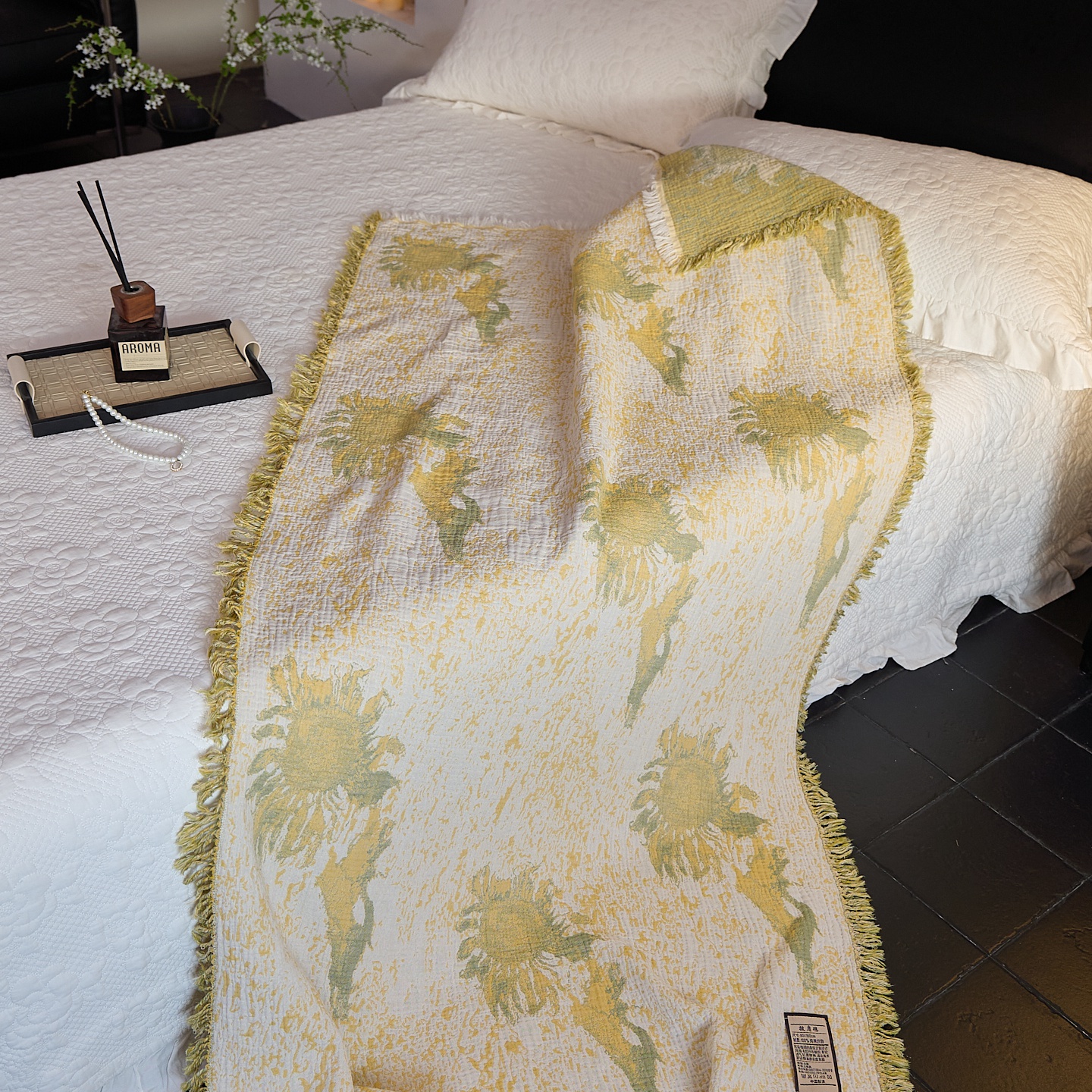(总)沐瑟家纺 2025新款简约风多功能纱布盖毯纱布毯子毛巾被床盖沙发巾单毯枕巾枕套三件套,H本色,H橙色,H咖色,大马士革本色