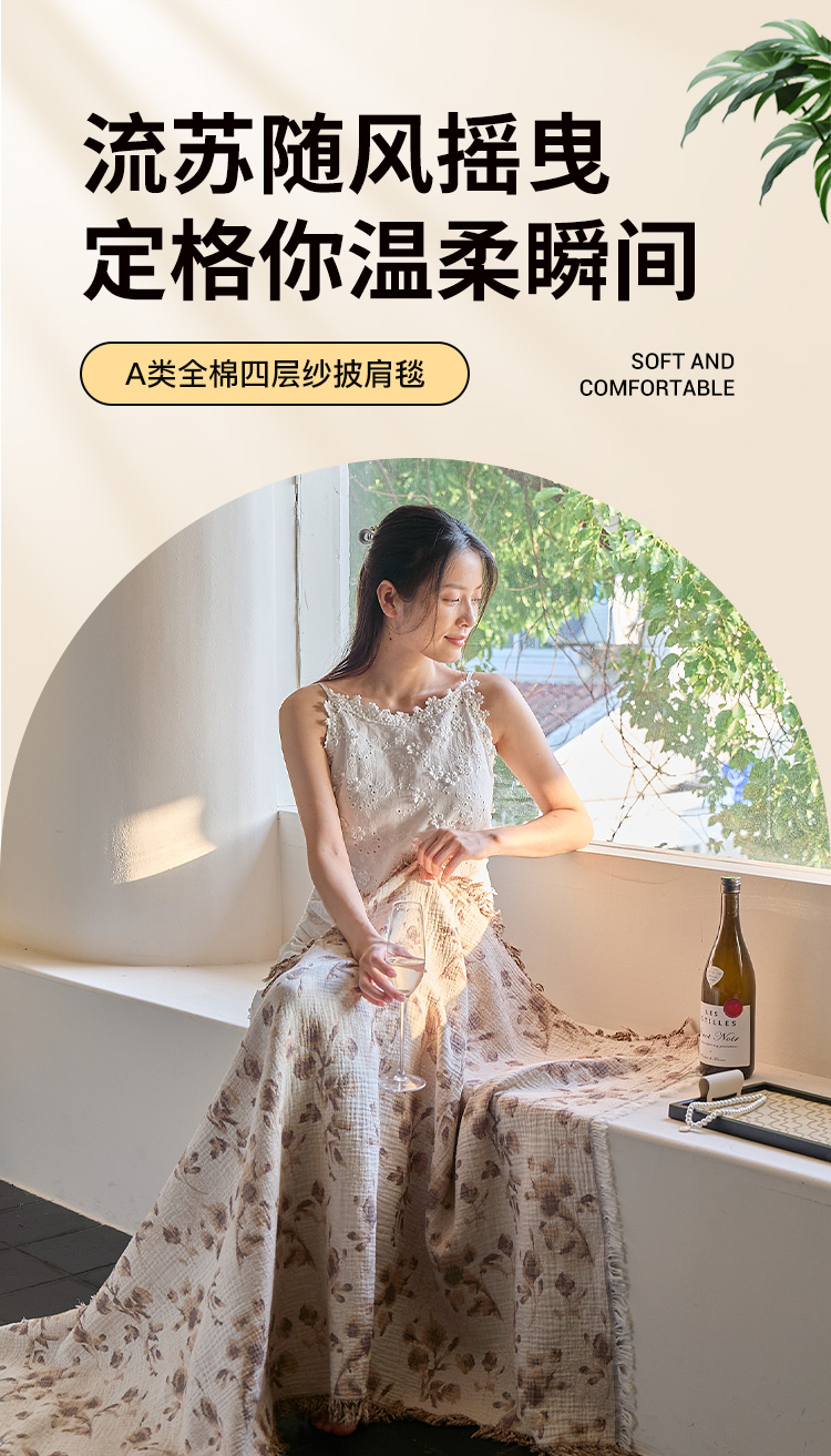 (总)沐瑟家纺 2025新款亲肤柔软全棉纱布中国风盖毯毯子,百花集,翠影鸟-蓝色,花想容,花鸟韵,蝶语-绿,蝶语-淡粉,花蝶-米,比翼鸟,墨葵,绮梦花