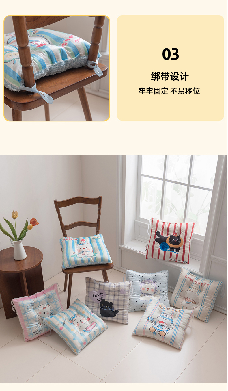 (总)博笔熊家纺 2025新款双面卡通坐垫,组合图仅做展示不可下单,格子西高地,格子小黑,海盗鸭,可爱西高地,甜品西高地,条纹西高地,围脖西高地,小黑毛线团