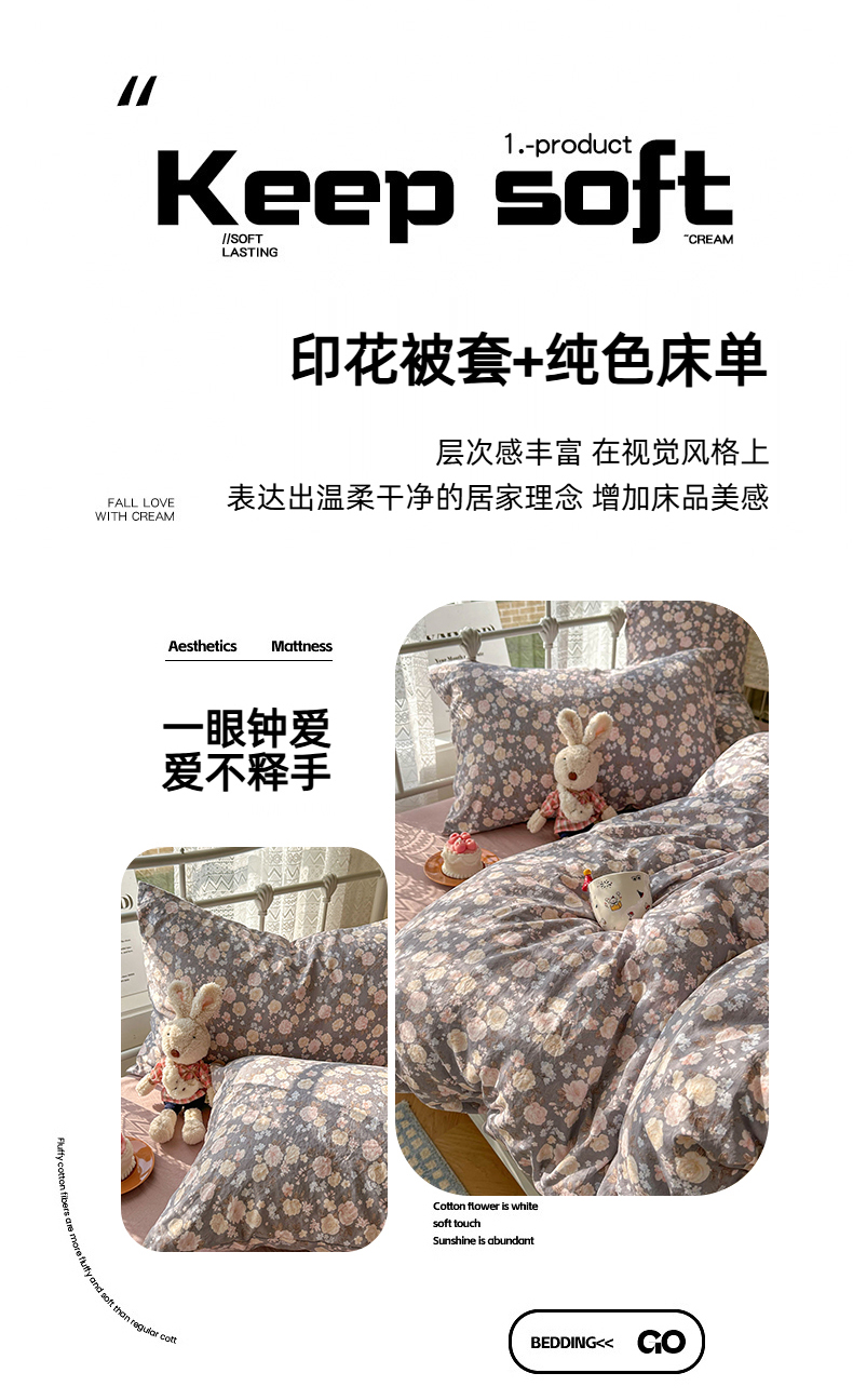 当前位置: 91家纺网 > 商品网购 > 床品套件 > 四件套 > 其它四件套 > 优选 2025新款加厚爆款小布袋韩国古法水洗棉床单学生三件套床笠款四件套 花漾