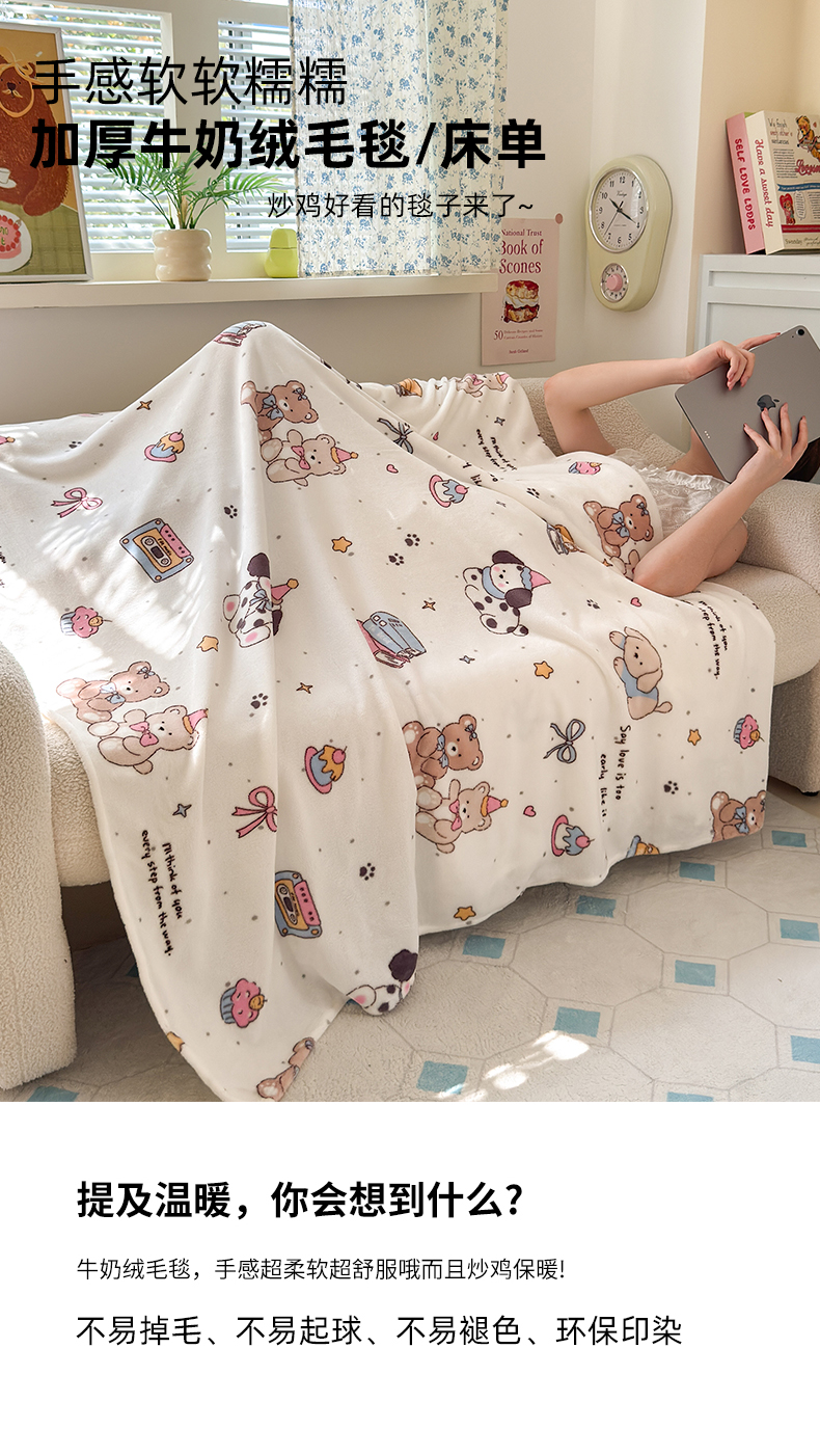 沐芷 2025 A类牛奶绒毛毯印花盖毯毛毯午休毯卡通多功能沙发毯空调毯 提供买家秀(下载文件包,包含买家秀) 【绒】磁带熊仔