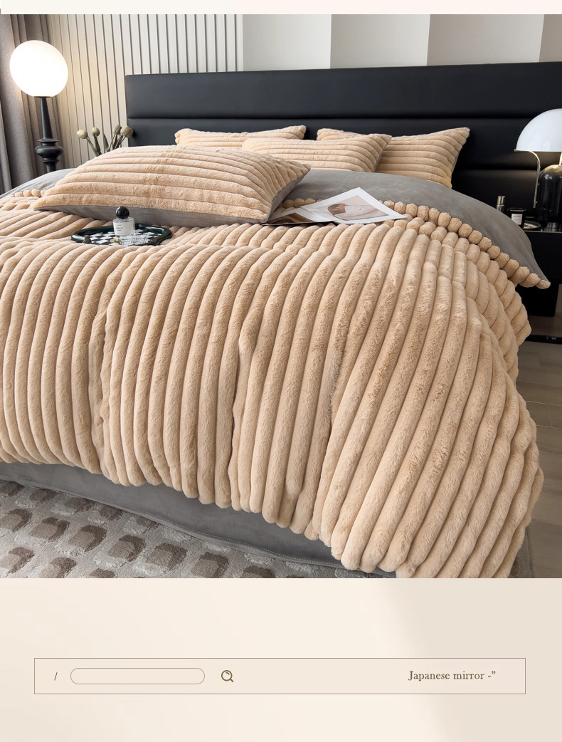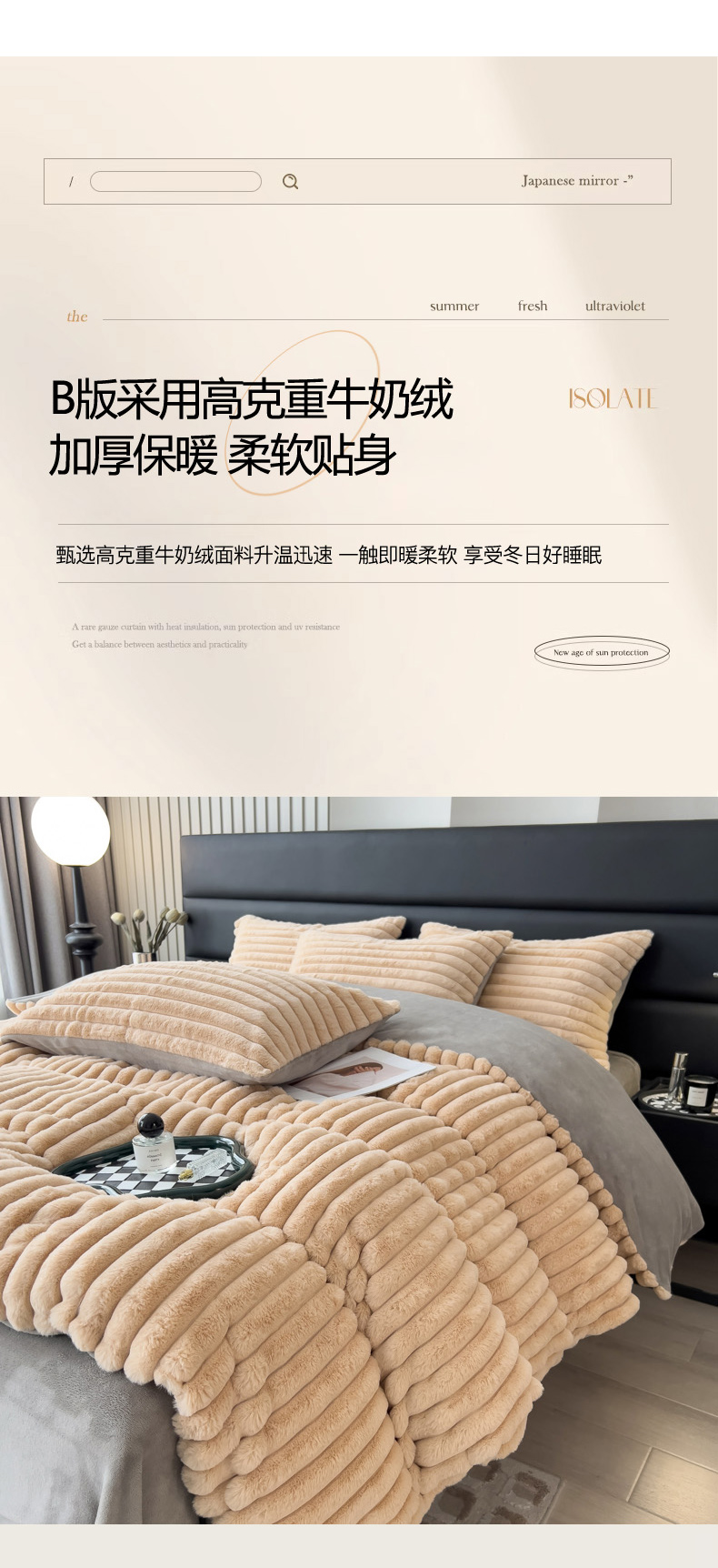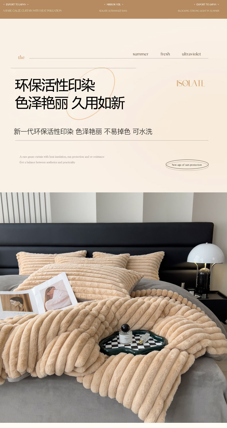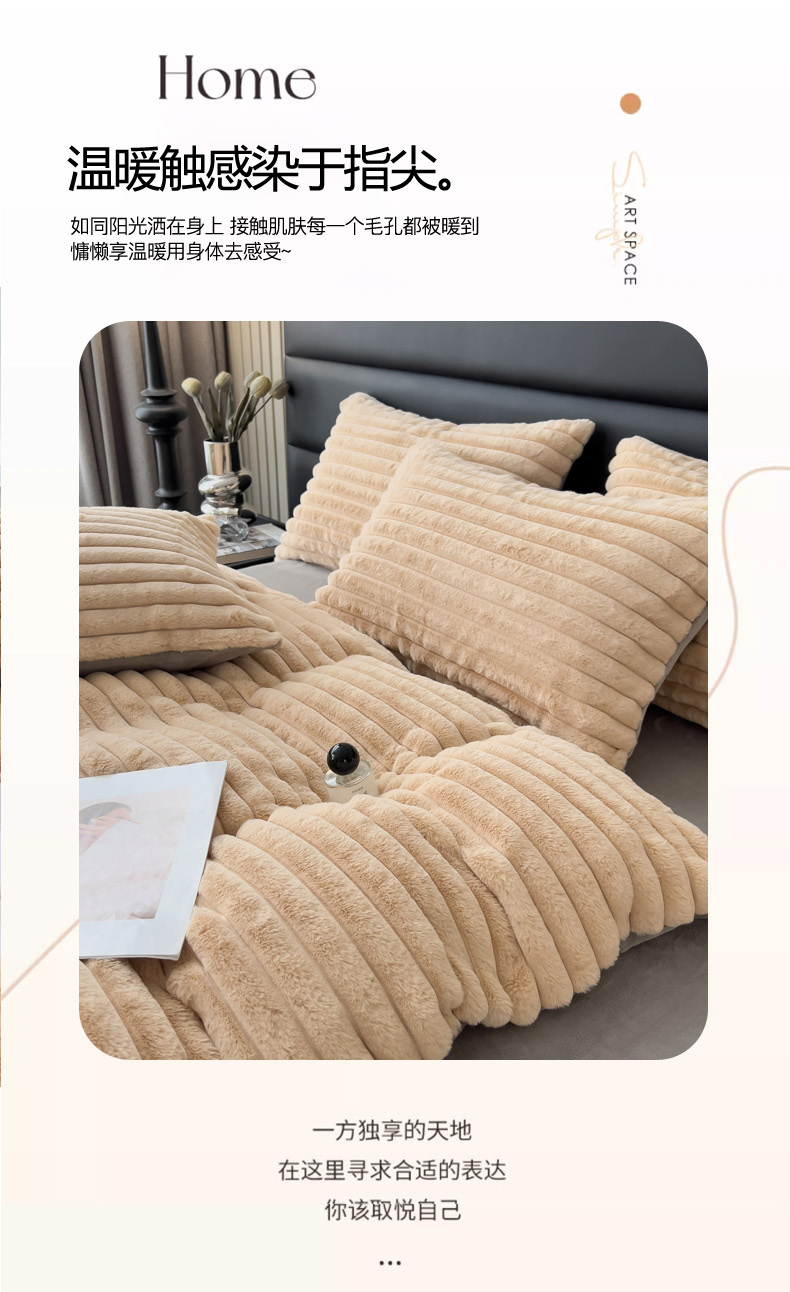 当前位置: 91家纺网 > 商品网购 > 床品套件 > 四件套 > 兔毛绒四件套 > 印季家纺 2025新款立体剪花条纹兔毛绒四件套 卡其-灰