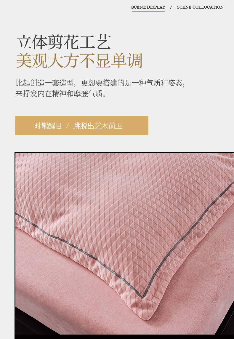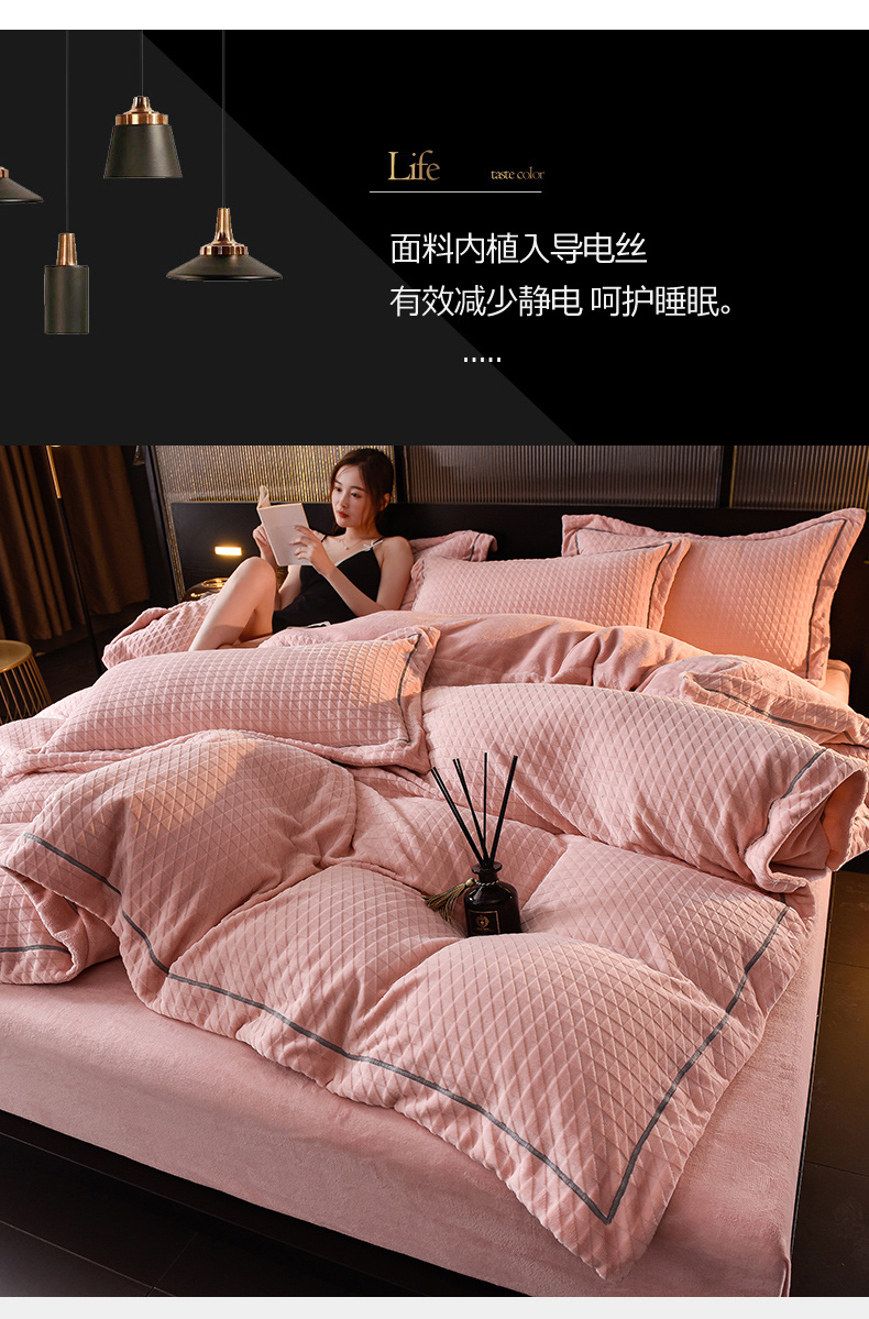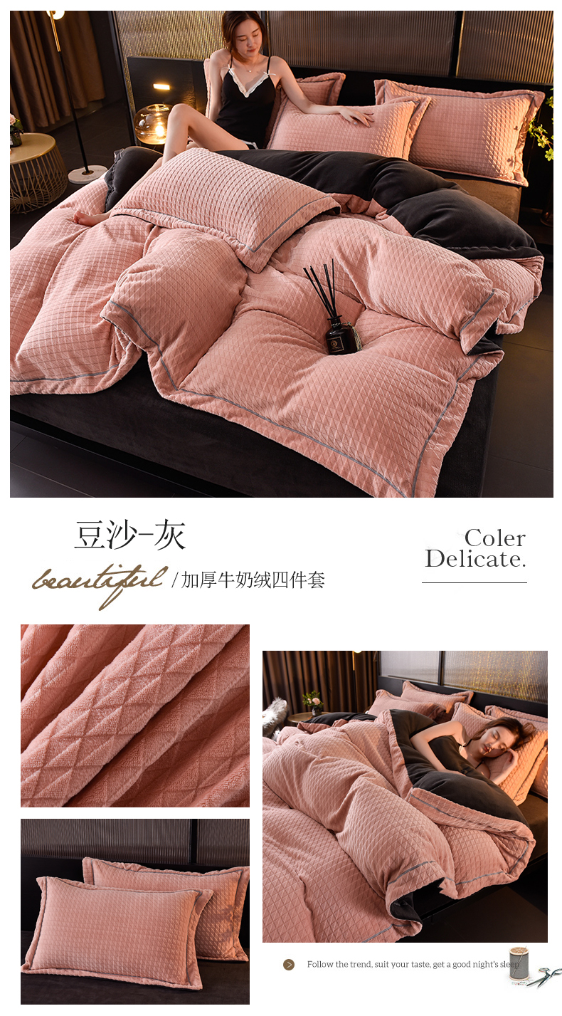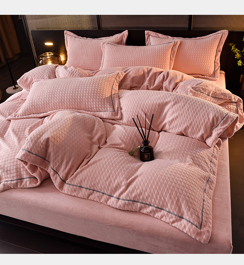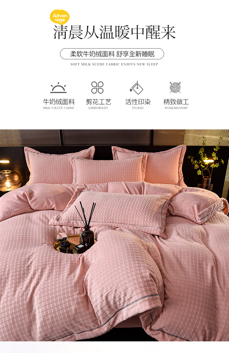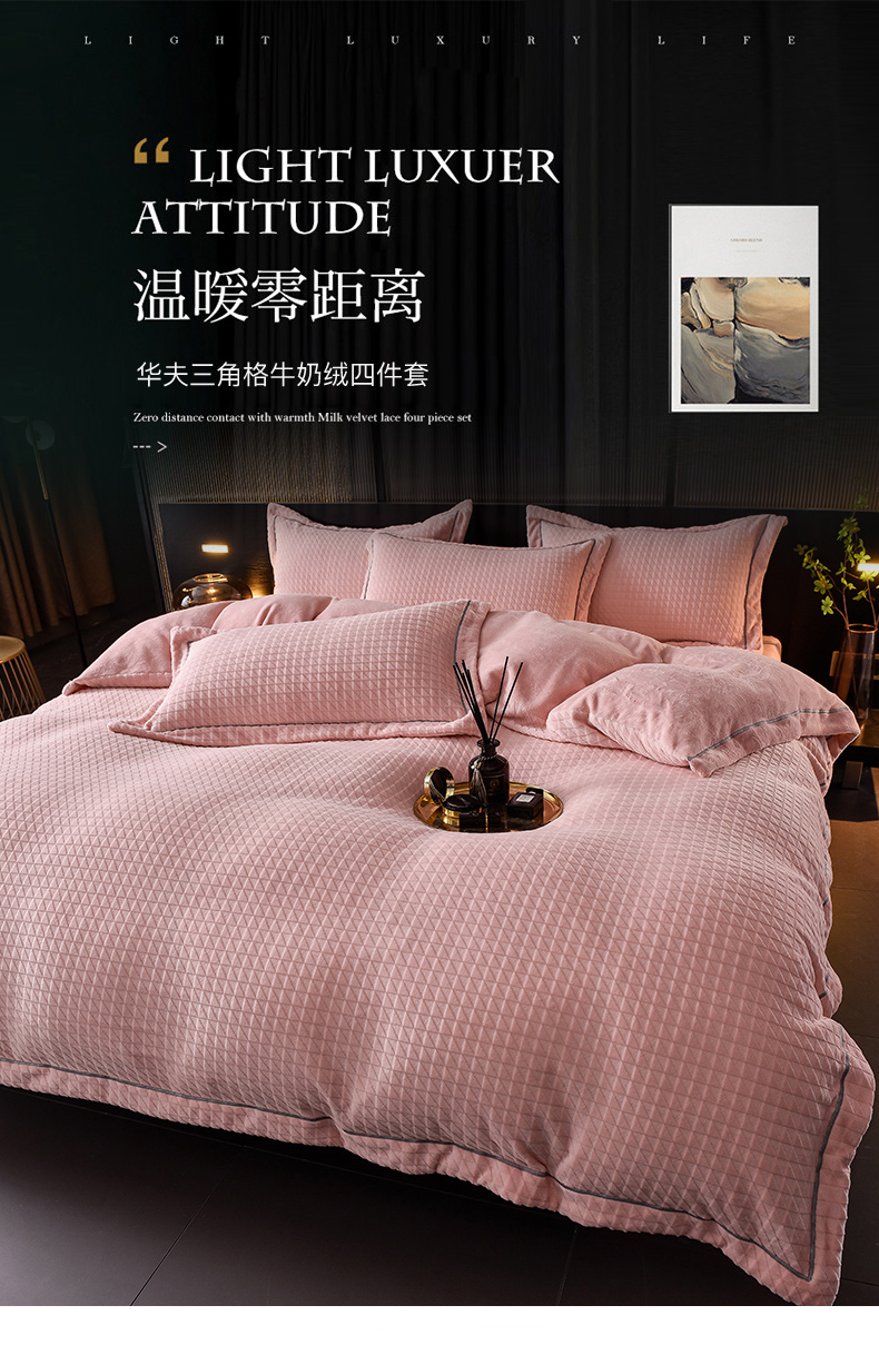 当前位置: 91家纺网 > 商品网购 > 床品套件 > 四件套 > 牛奶绒四件套 > 印季家纺 2025新款华夫格三角格牛奶绒四件套 嫩粉