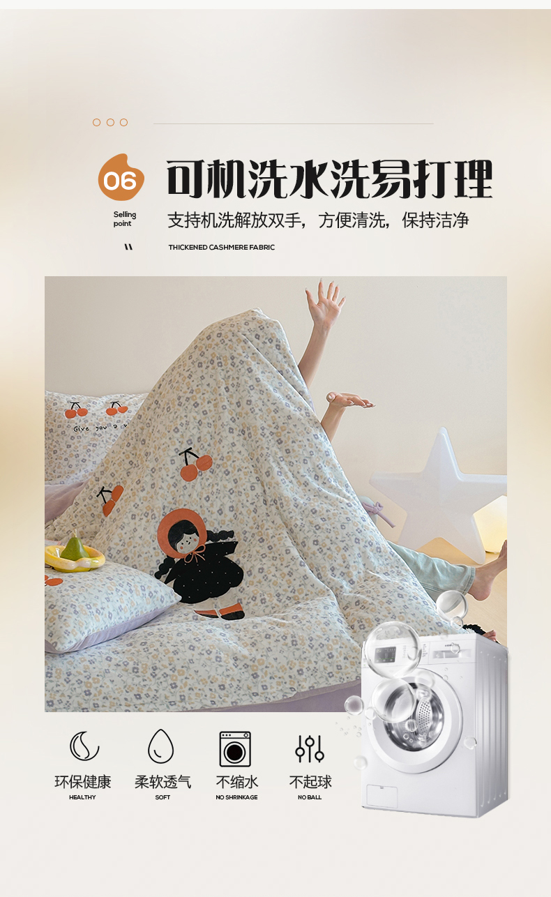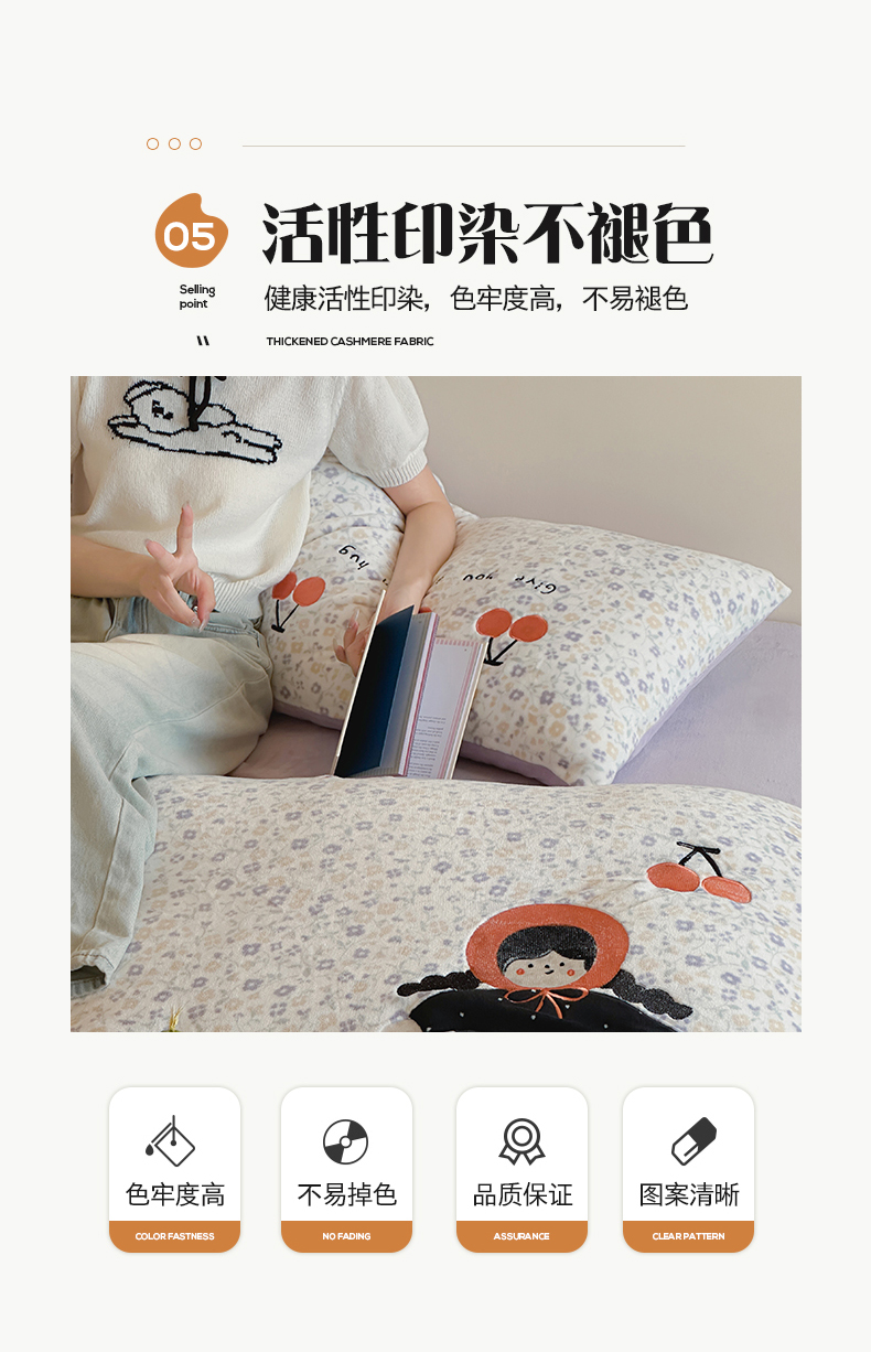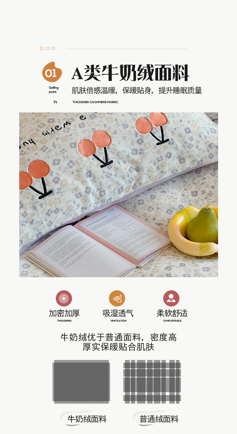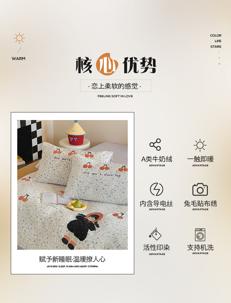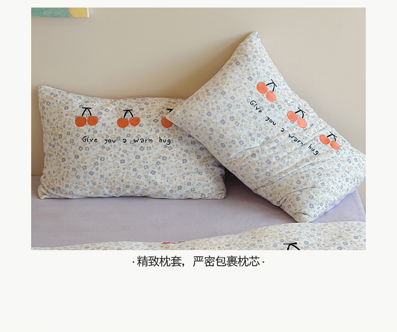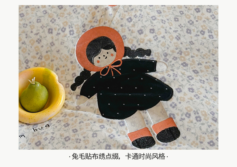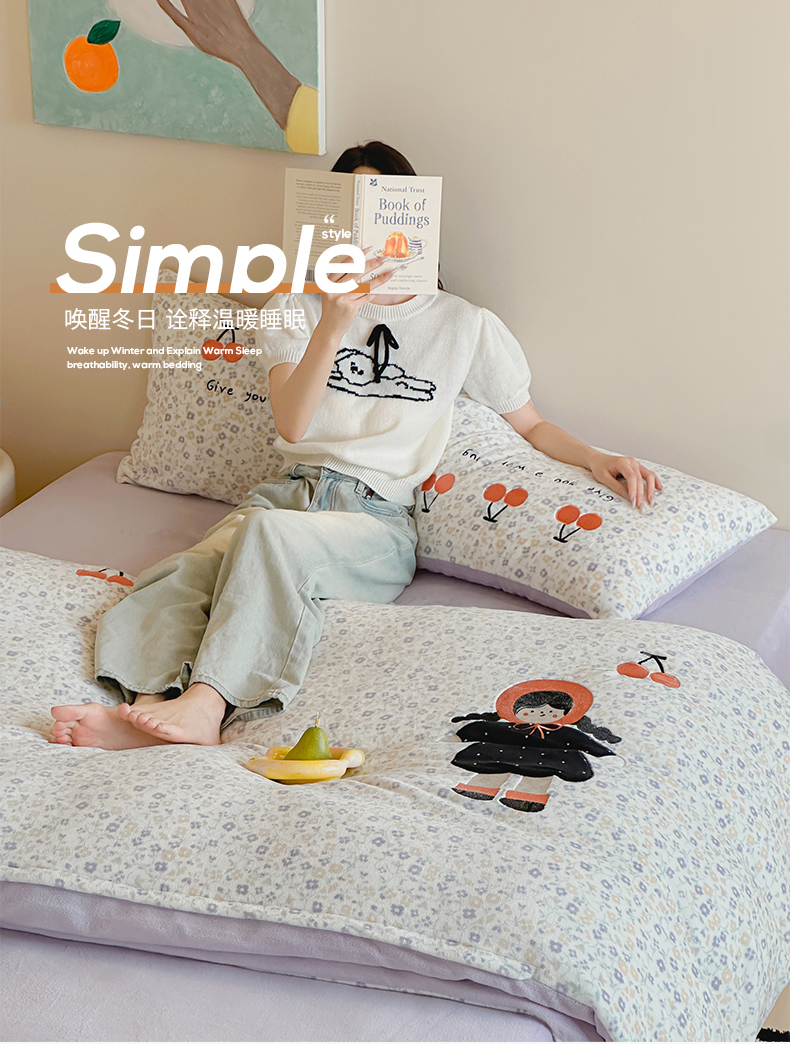 商品名称:桃子家居 2025新款A类ins兔毛贴布绣毛巾绣印加绣卡通少女加厚牛奶绒系列四件套 绒贴布绣-樱桃女孩