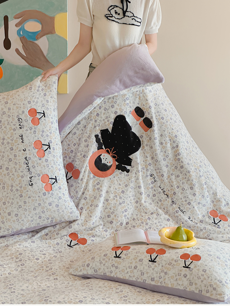 桃子家居 2025新款A类ins兔毛贴布绣毛巾绣印加绣卡通少女加厚牛奶绒系列四件套 绒贴布绣-樱桃女孩