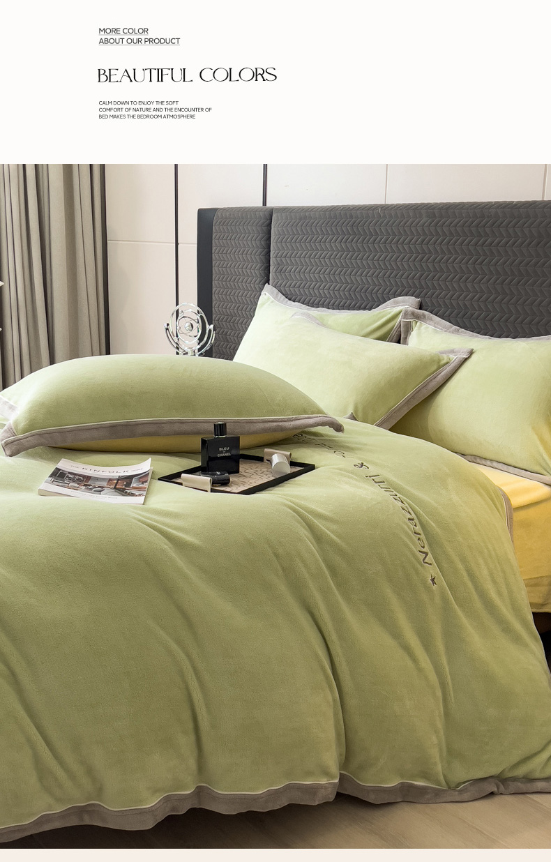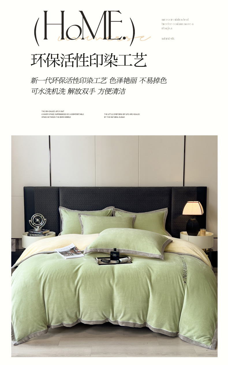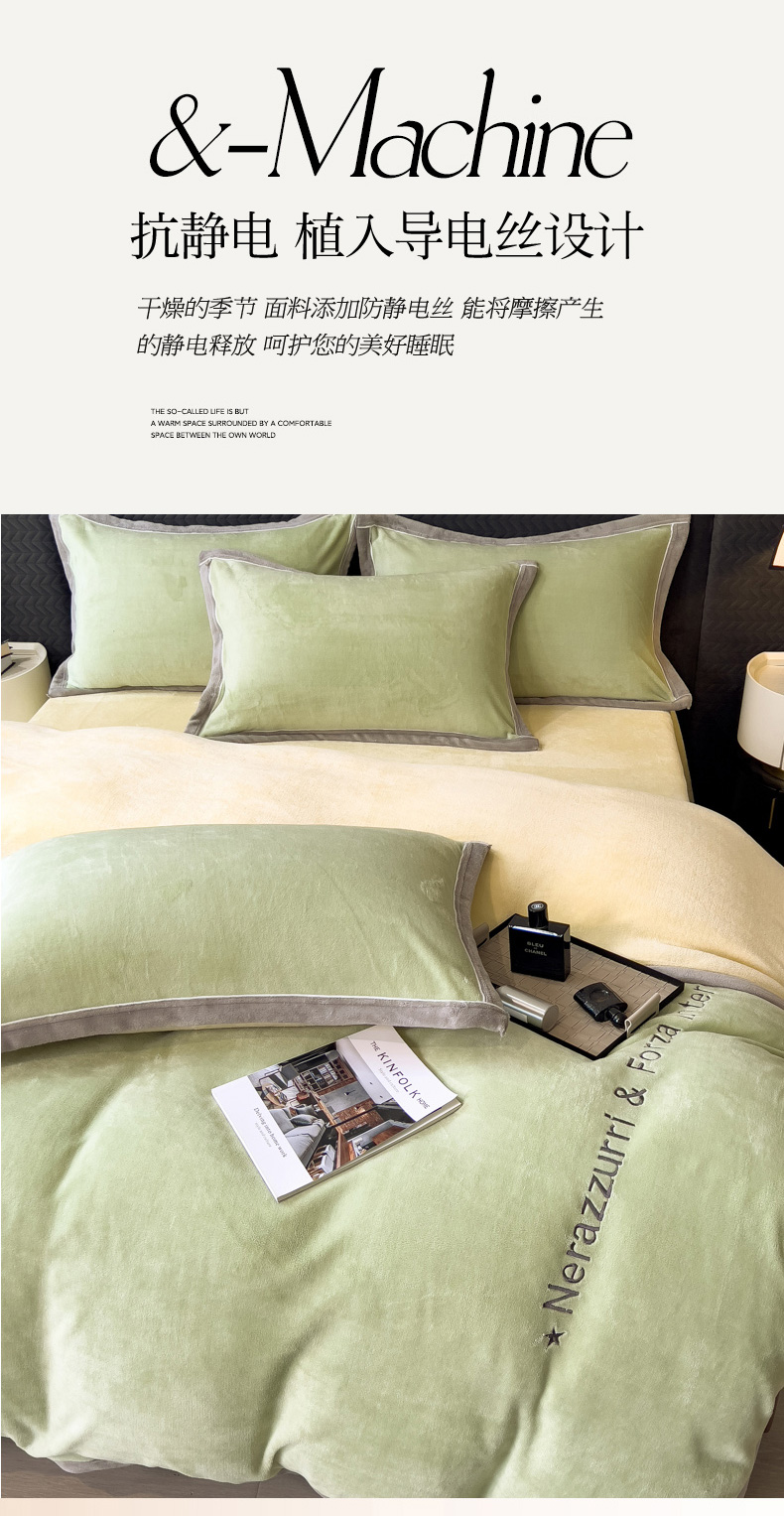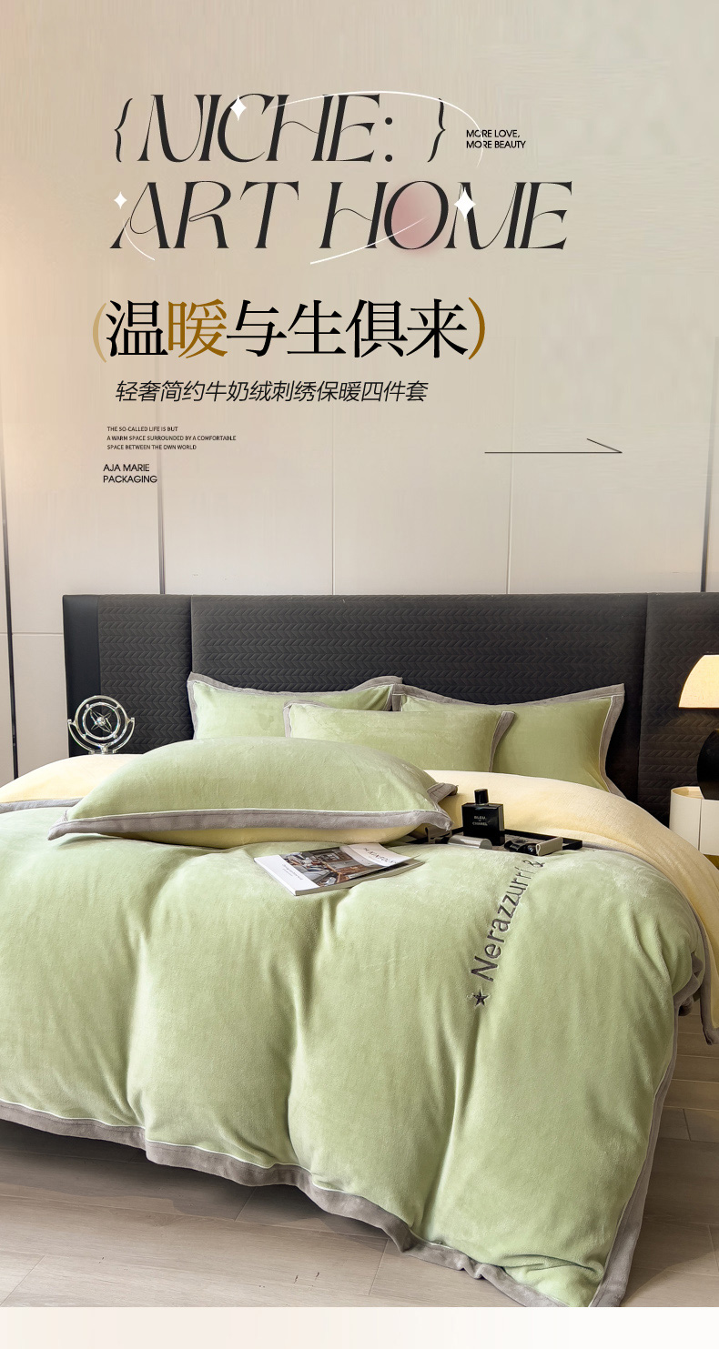 当前位置: 91家纺网 > 商品网购 > 床品套件 > 四件套 > 牛奶绒四件套 > 印季家纺 2025新款牛奶绒两星绣花包边四件套 草绿-奶油黄
