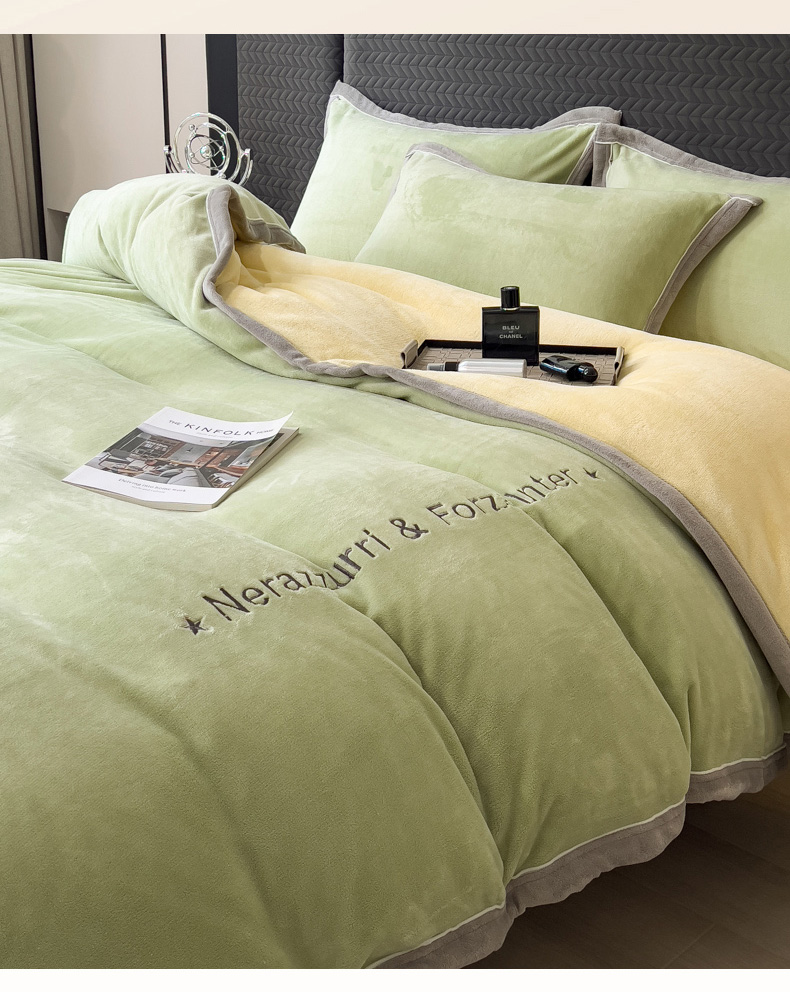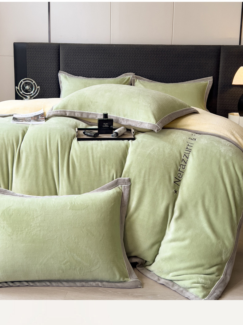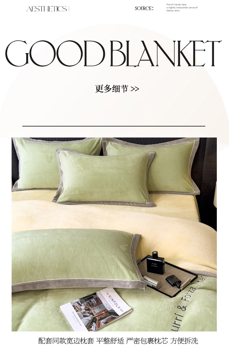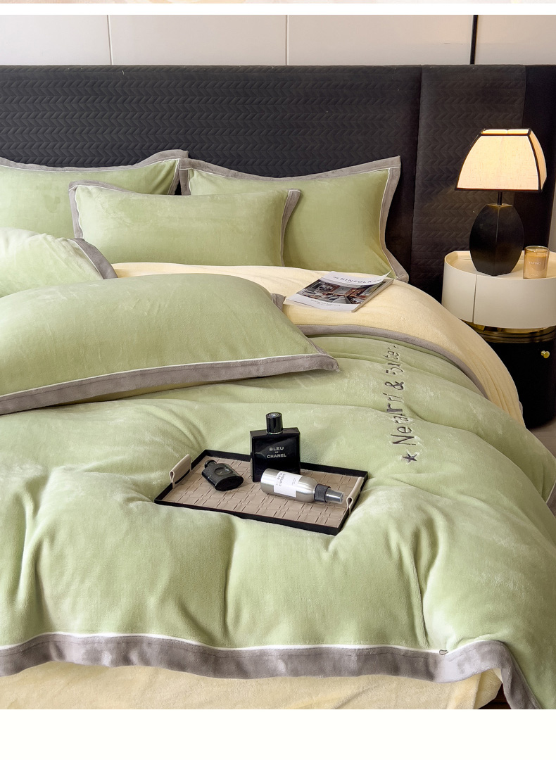 当前位置: 91家纺网 > 商品网购 > 床品套件 > 四件套 > 牛奶绒四件套 > 印季家纺 2025新款牛奶绒两星绣花包边四件套 草绿-奶油黄