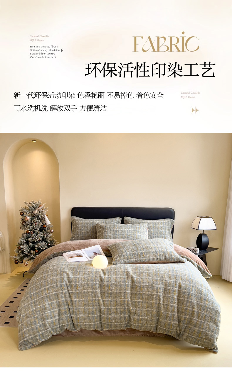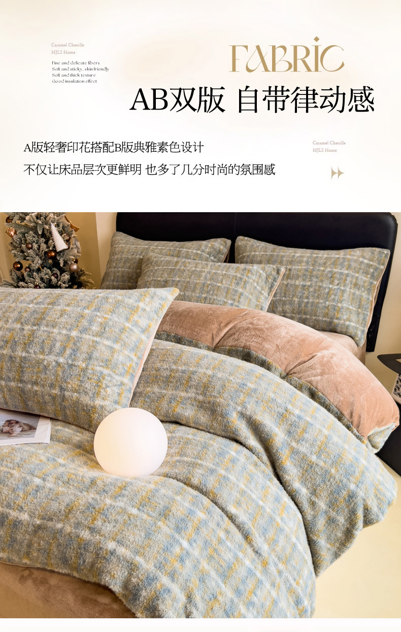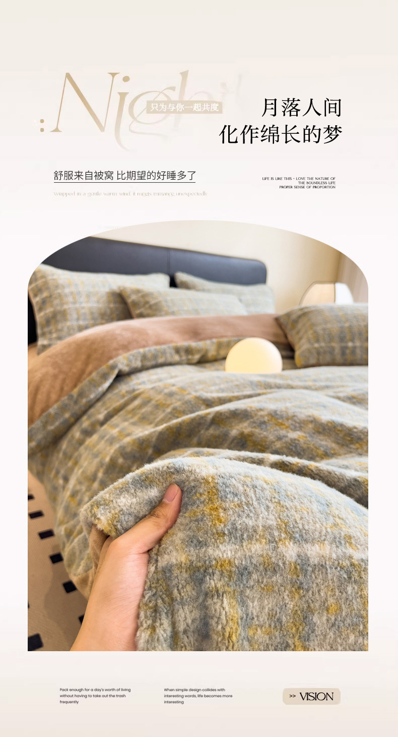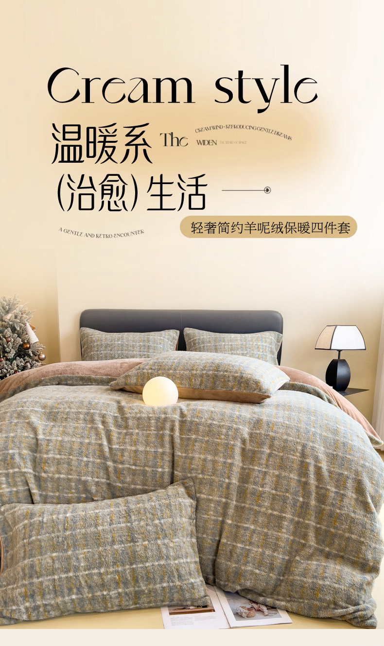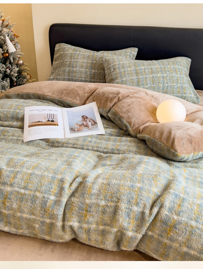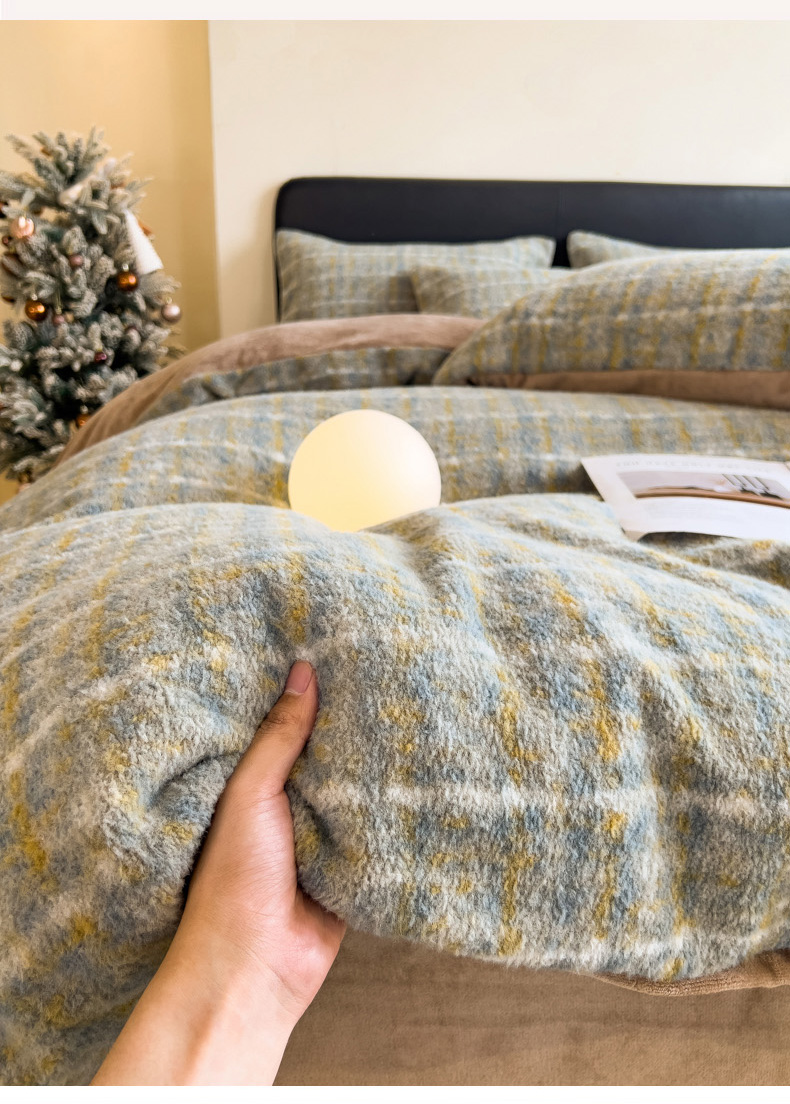 当前位置: 91家纺网 > 商品网购 > 床品套件 > 四件套 > 其它四件套 > 印季家纺 2025新款轻奢简约羊呢绒亲肤保暖四件套 小香彩格