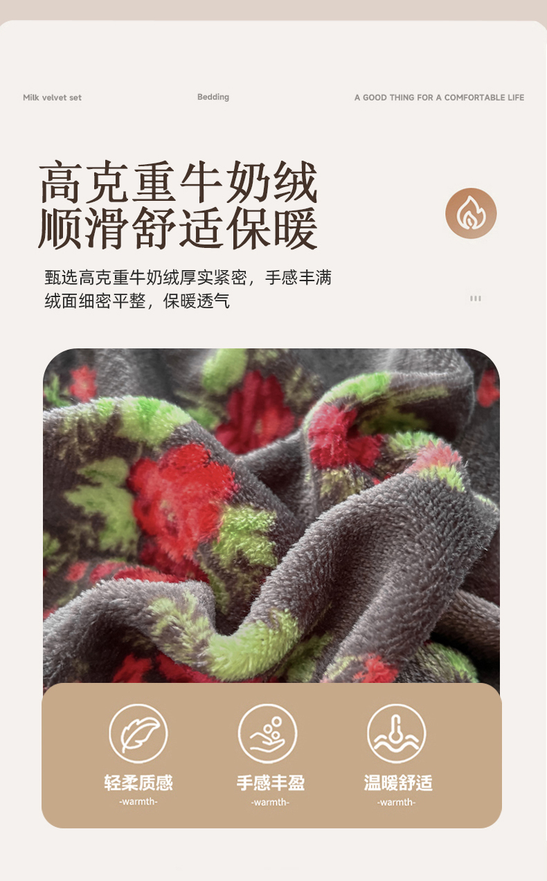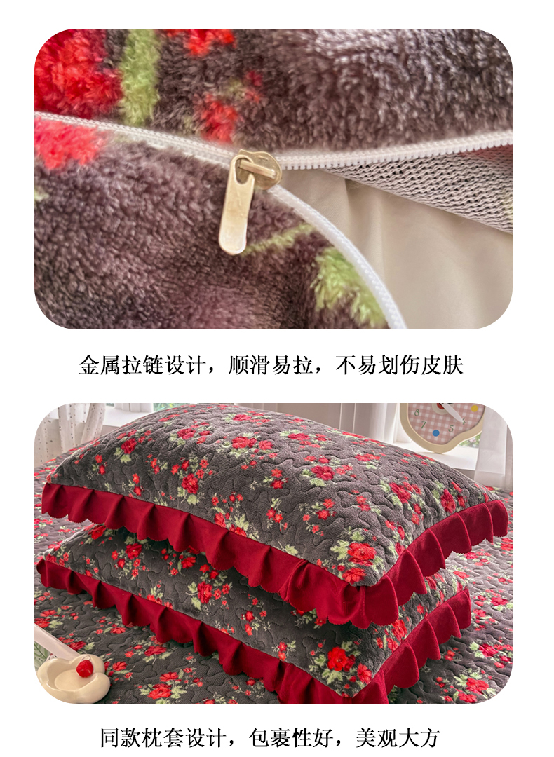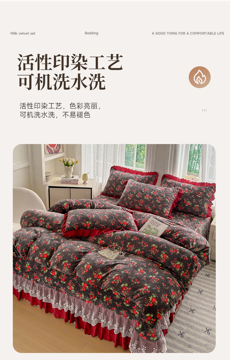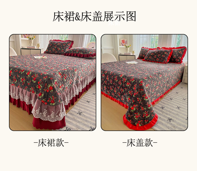 当前位置: 91家纺网 > 商品网购 > 床品套件 > 四件套 > 牛奶绒四件套 > 浩浩家纺 2025新款舒适花边牛奶绒床盖四件套 红花